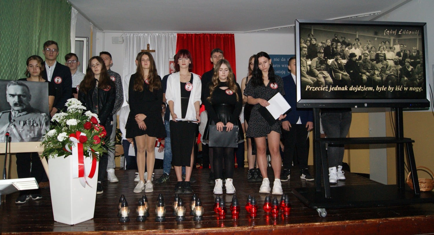 Obchody 105. Rocznicy Odzyskania przez Polskę Niepodległości rozpoczęliśmy już wczoraj. Z tej okazji odbył się w naszej szkole III biało- czerwony Bieg Niepodległości. W dniu dzisiejszym o godzinie 11.11 młodzież, nauczyciele i wychowawcy zgromadzili się na holu szkolnym aby wspólnie zaśpiewać " Mazurka Dąbrowskiego".