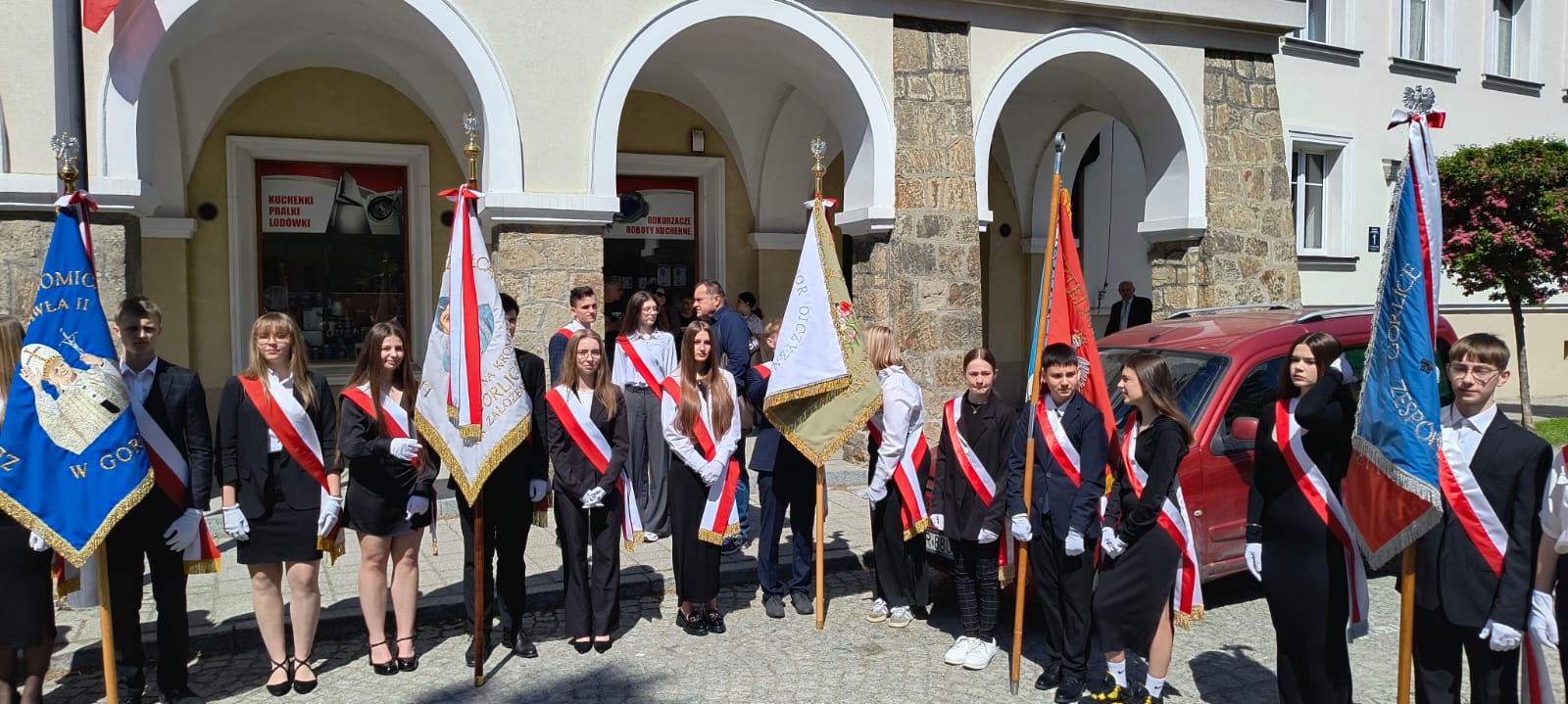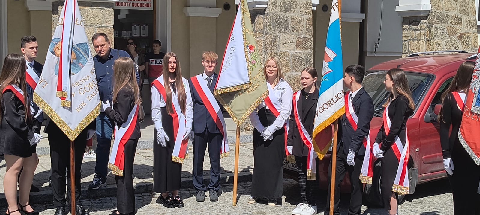 W sobotę 3 maja poczet sztandarowy szkoły reprezentował nas w Gorlicach na uroczystościach związanych z rocznicą uchwalenia Konstytucji 3 maja. Po mszy świętej w bazylice NMP w Gorlicach uczniowie, gospodarze miasta i powiatu, przedstawiciele szkół i instytucji oraz członkowie bractw strzeleckich w towarzystwie Orkiestry Dętej OSP w Dominikowicach wyruszyli w pochodzie pod Pomnik Niepodległości.