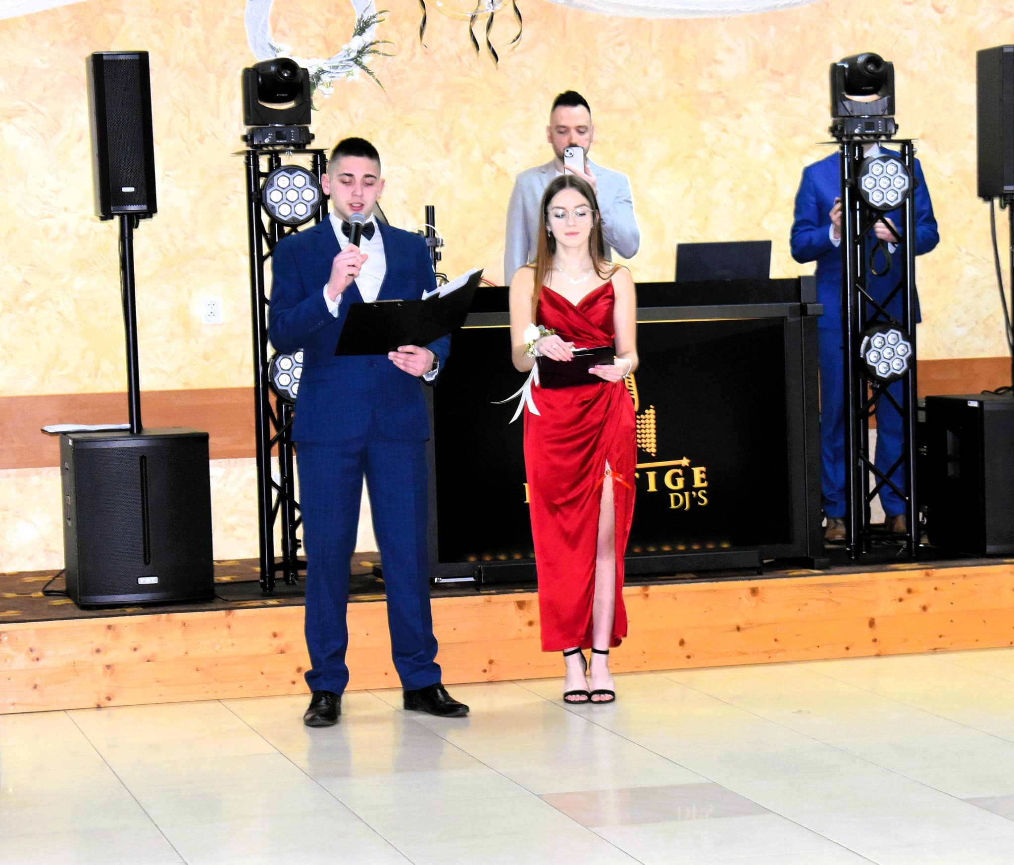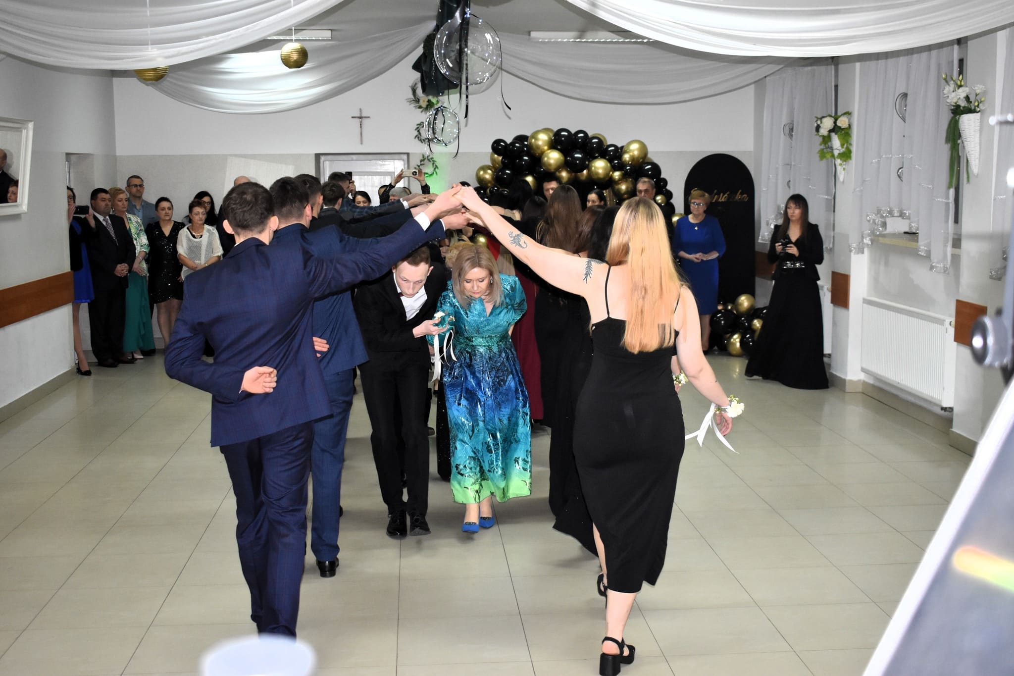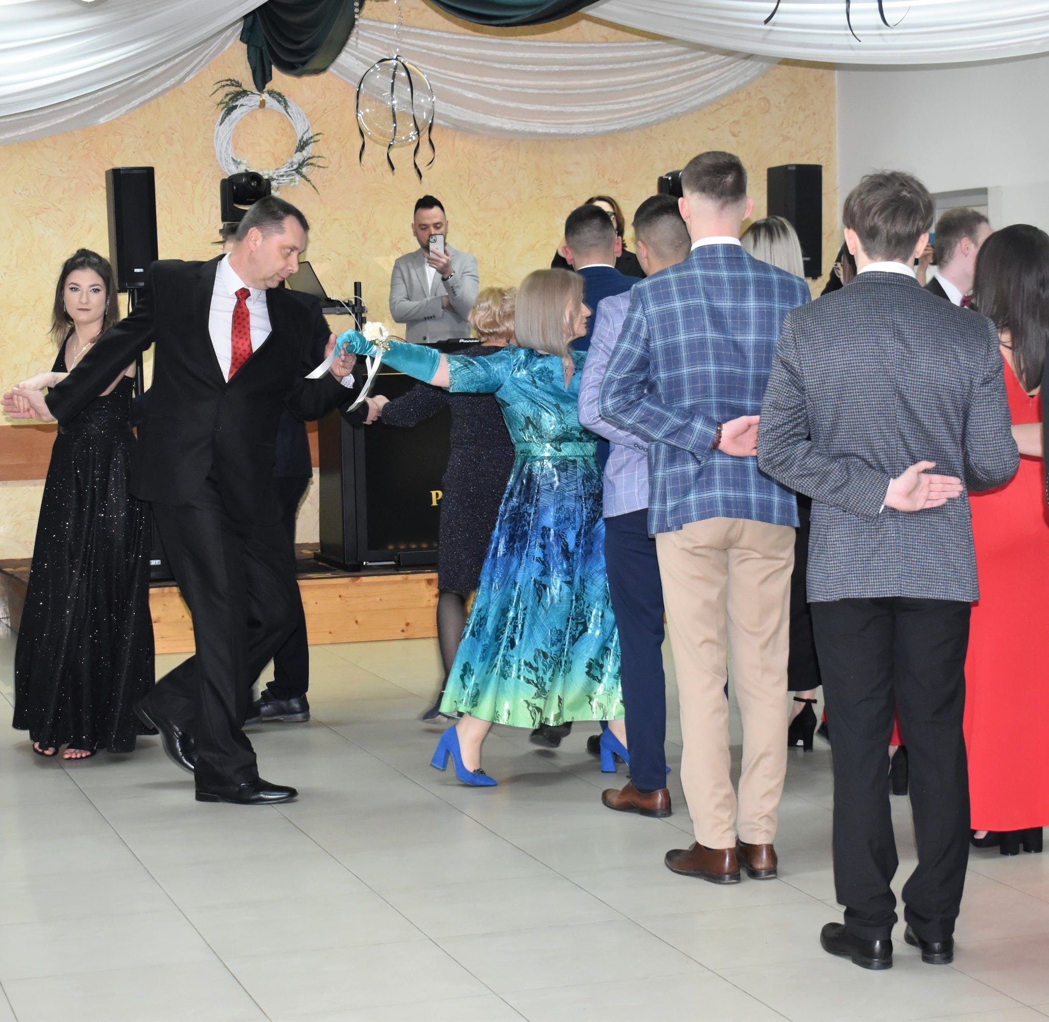 Zabawa rozpoczęła się od tradycyjnego poloneza, który wprowadził wszystkich w radosny nastrój. Po tańcach przyszedł czas na część artystyczną, gdzie uczniowie złożyli serdeczne podziękowania dla Pana Dyrektora oraz wychowawców za ich trud i wsparcie przez ostatnie lata.