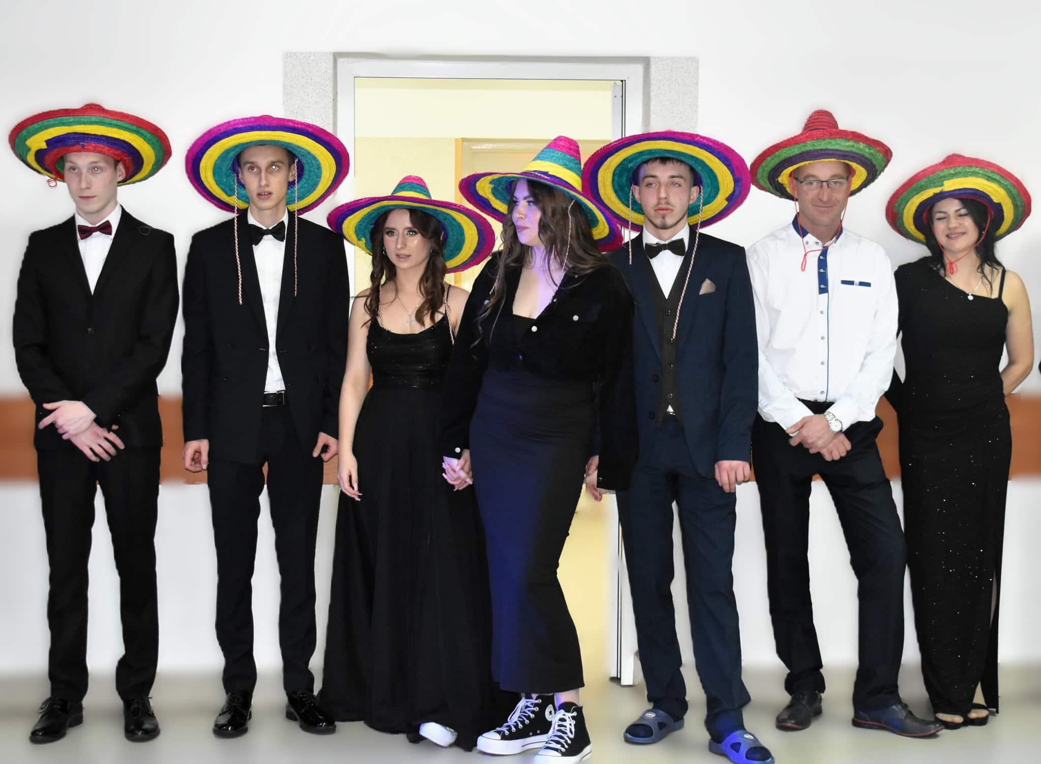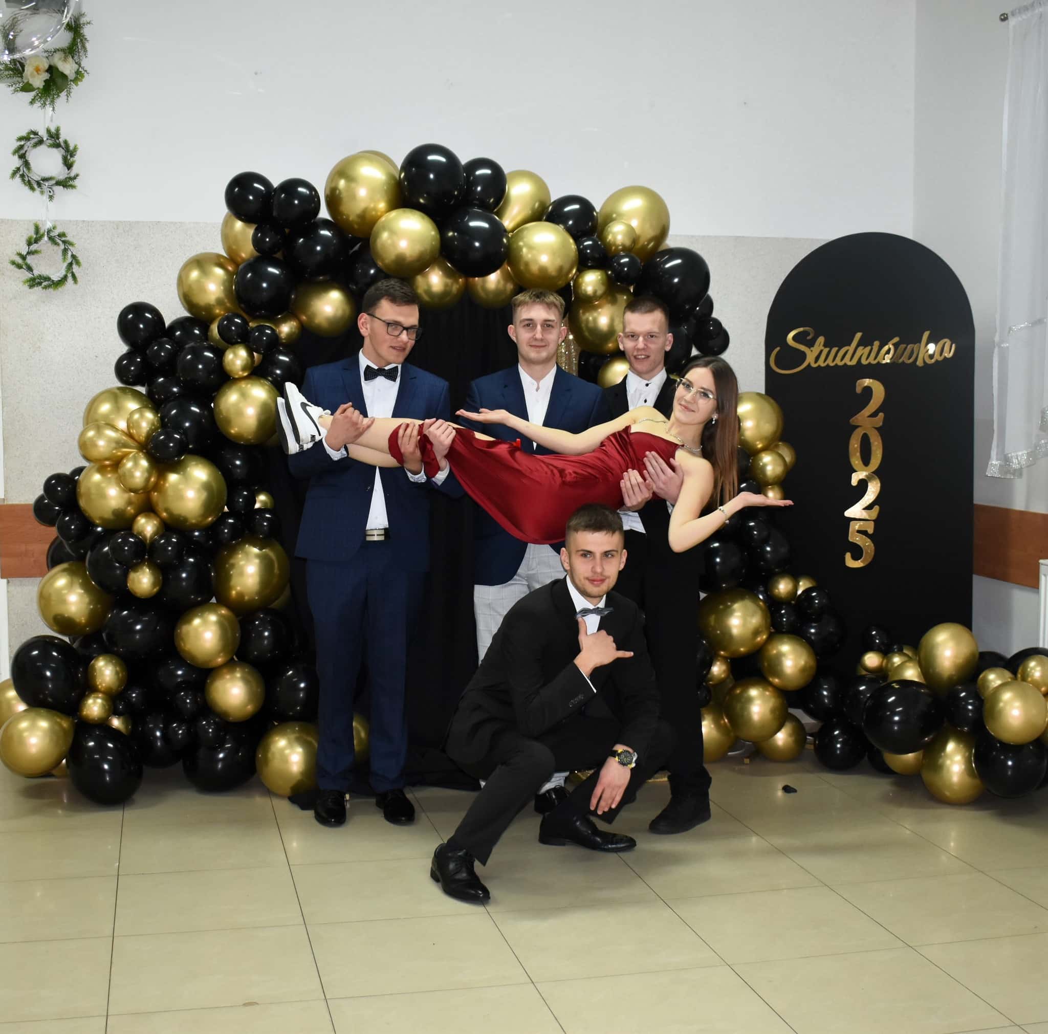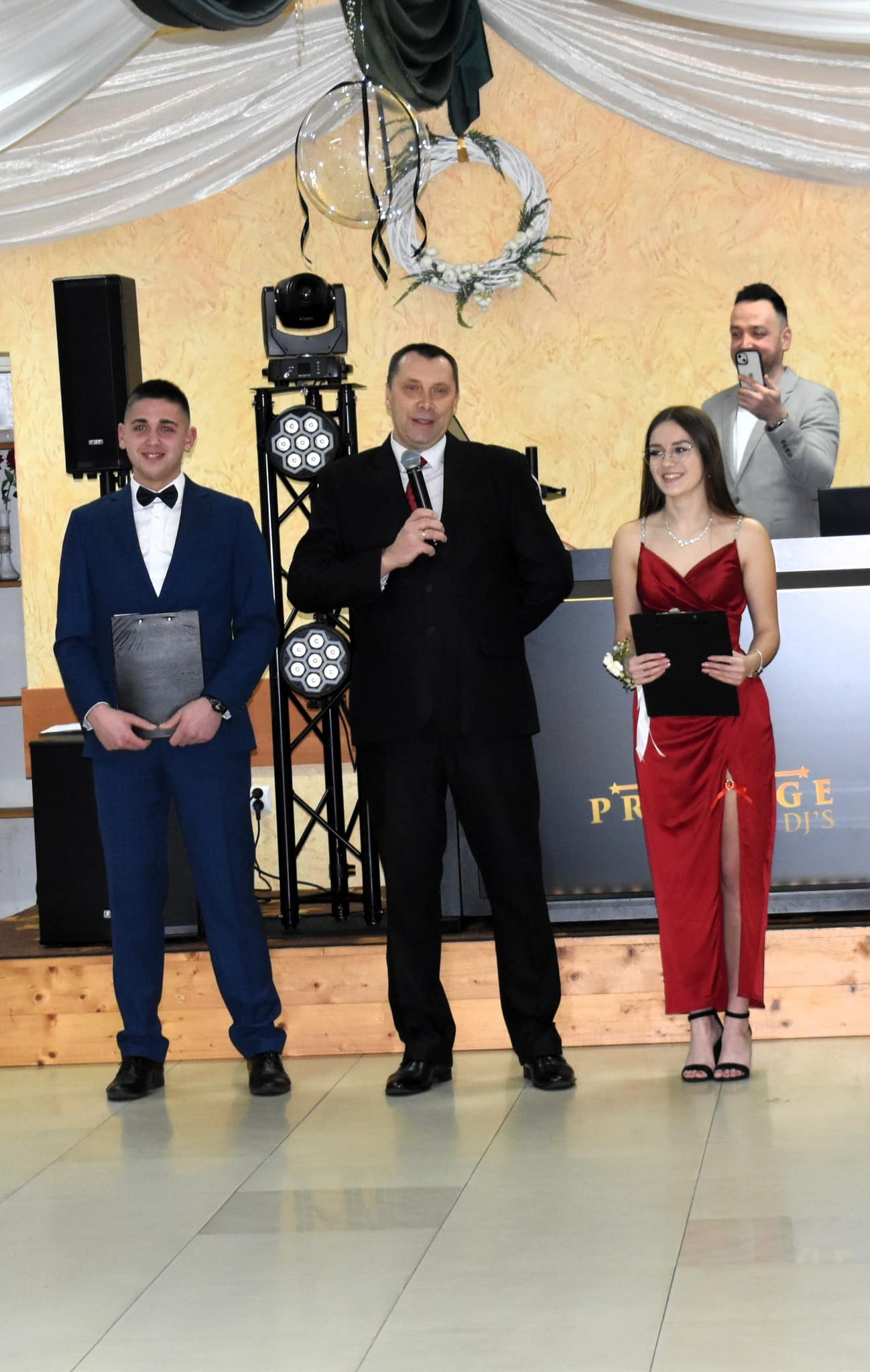 Zabawa rozpoczęła się od tradycyjnego poloneza, który wprowadził wszystkich w radosny nastrój. Po tańcach przyszedł czas na część artystyczną, gdzie uczniowie złożyli serdeczne podziękowania dla Pana Dyrektora oraz wychowawców za ich trud i wsparcie przez ostatnie lata.