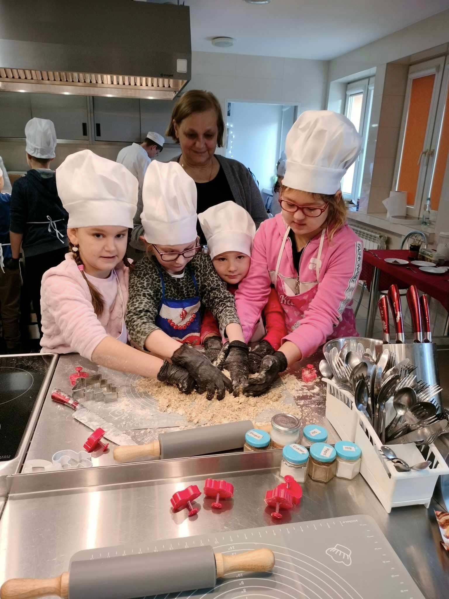 Małe rączki ugniatają, mieszają, wałkują, a paluszki wykrawają najróżniejsze kształty. W czasie wypieku ciasta piernikowego, dzieci zajmują się dekorowaniem wcześniej przygotowanych pierników.