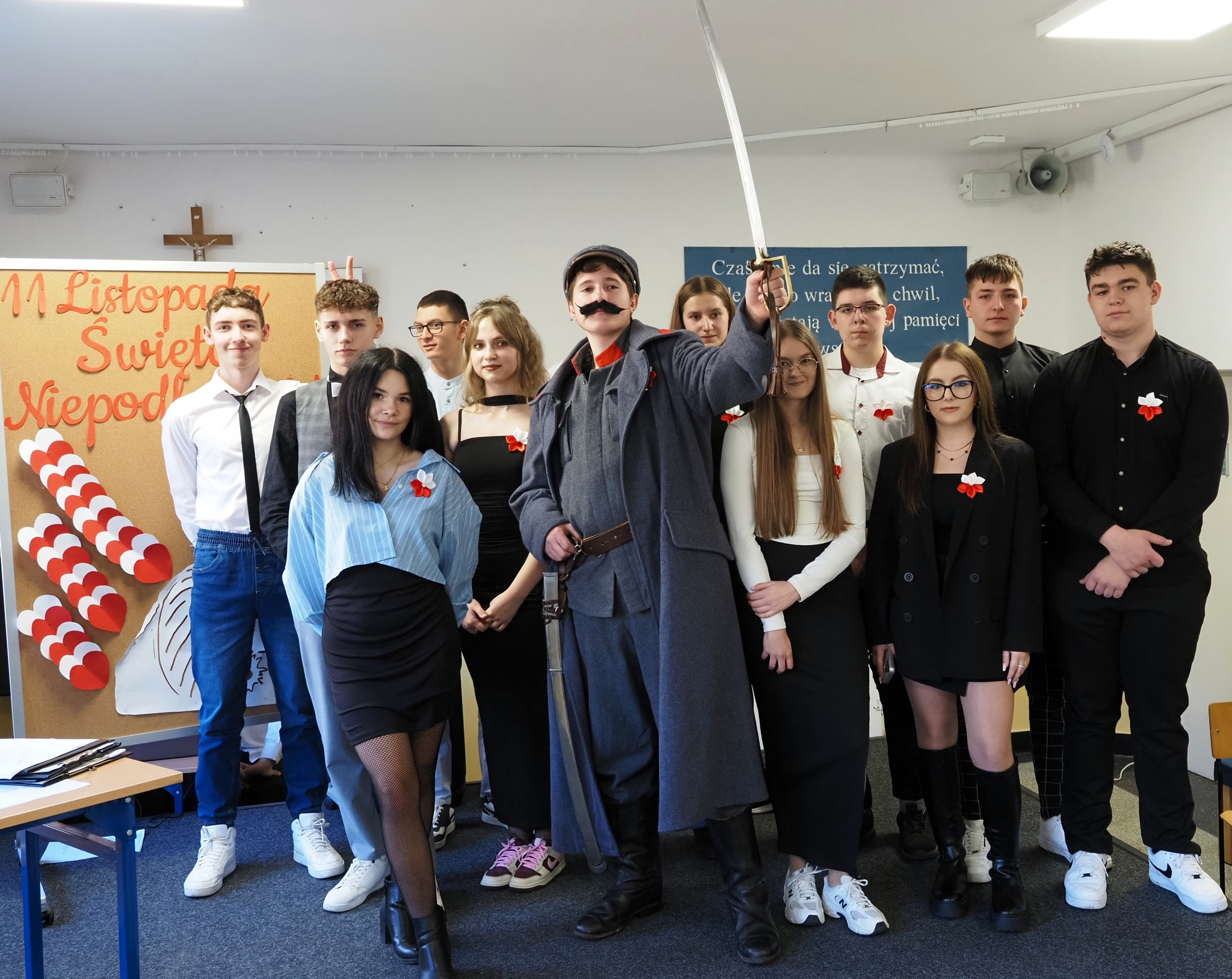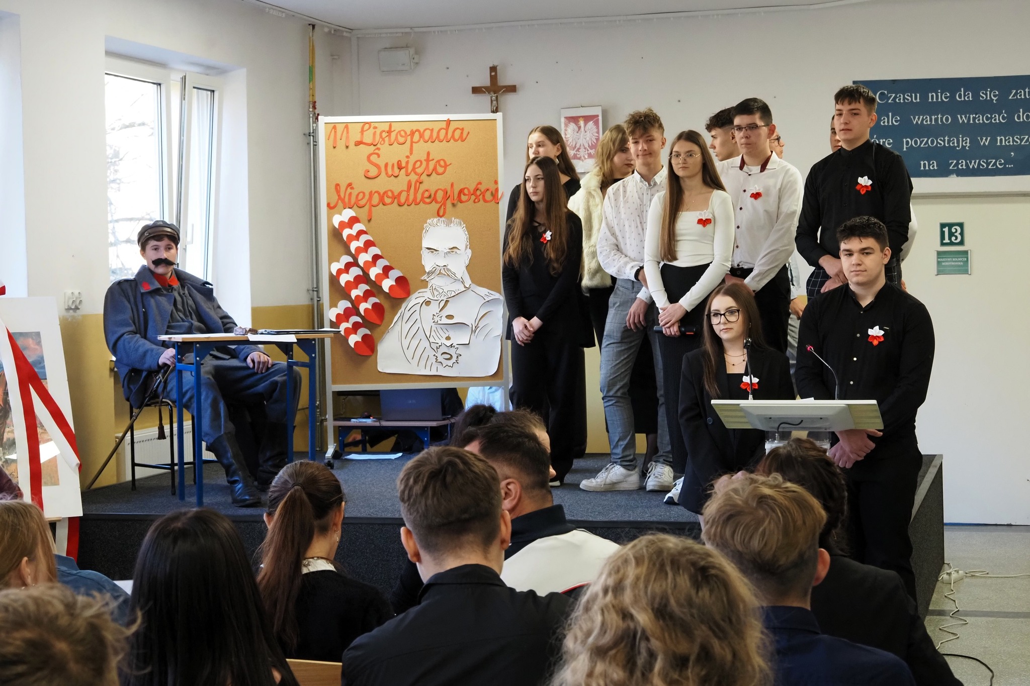 Po sportowym akcencie przenieśliśmy się do szkoły, gdzie uczniowie zaprezentowali poruszający montaż słowno-muzyczny, który przybliżył nam historię walki o niepodległość i znaczenie tego święta dla każdego Polaka. To był dzień pełen refleksji, wzruszeń i dumy z naszej Ojczyzny