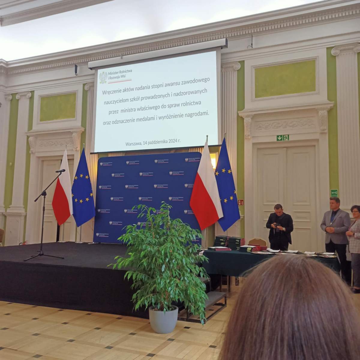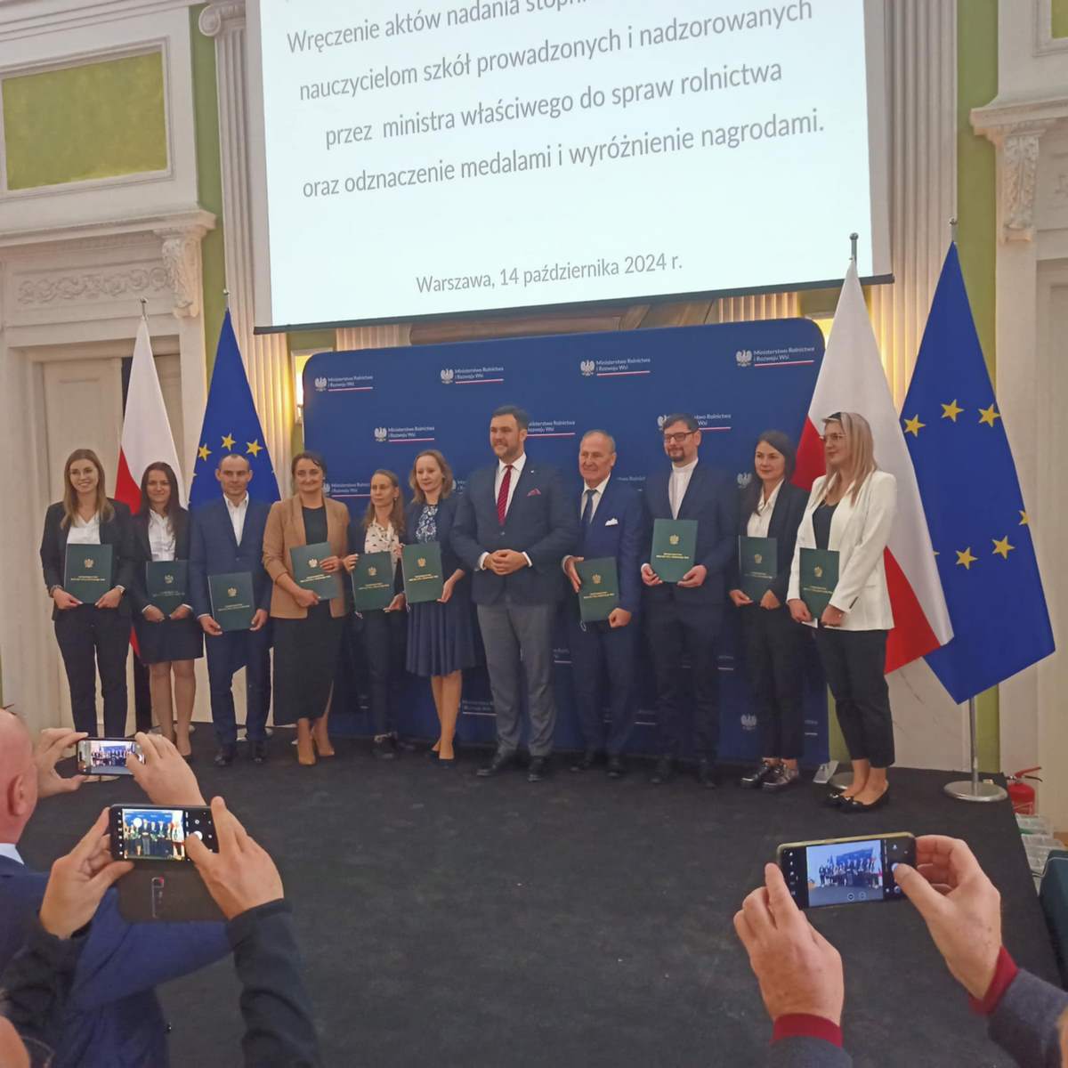 Dziś odbyła się uroczystość odebrania ślubowania od nauczycieli mianowanych oraz wręczenie aktów nadania wyższego stopnia awansu zawodowego nauczycielom mianowanym i dyplomowanym zatrudnionym w szkołach rolniczych prowadzonych i nadzorowanych przez Ministra Rolnictwa i Rozwoju Wsi.