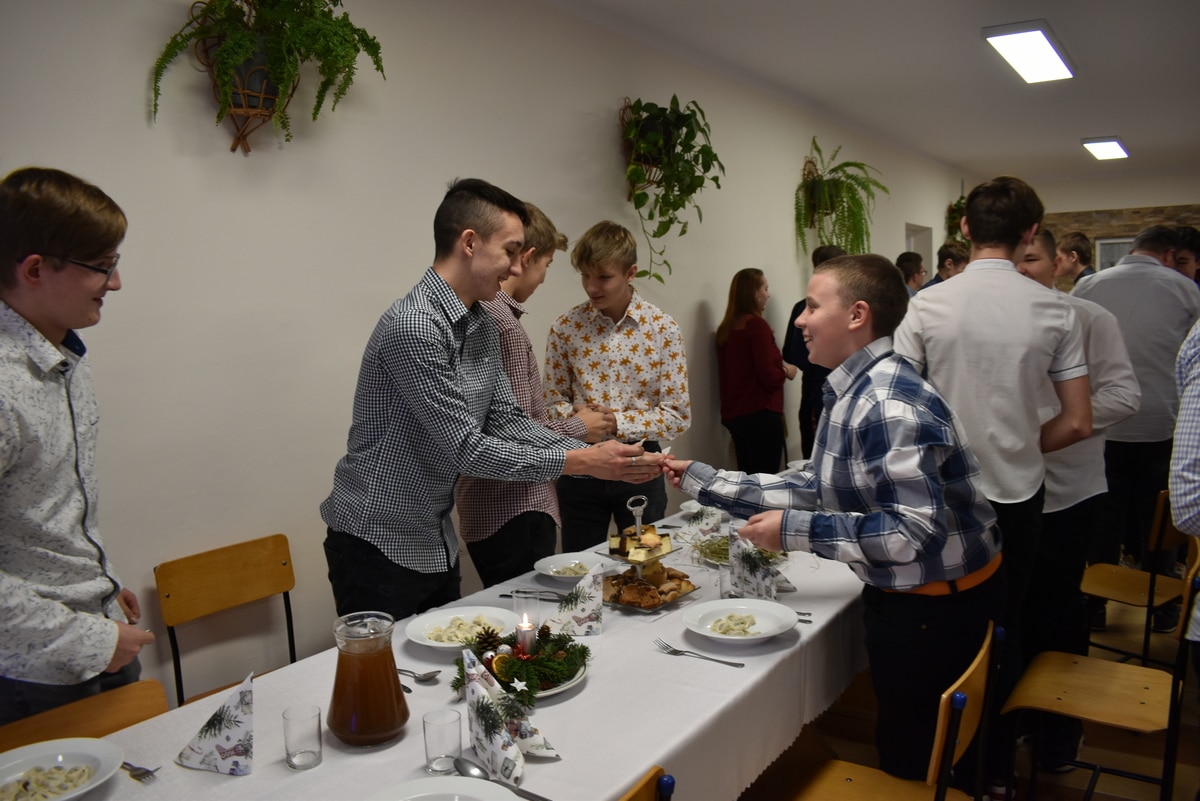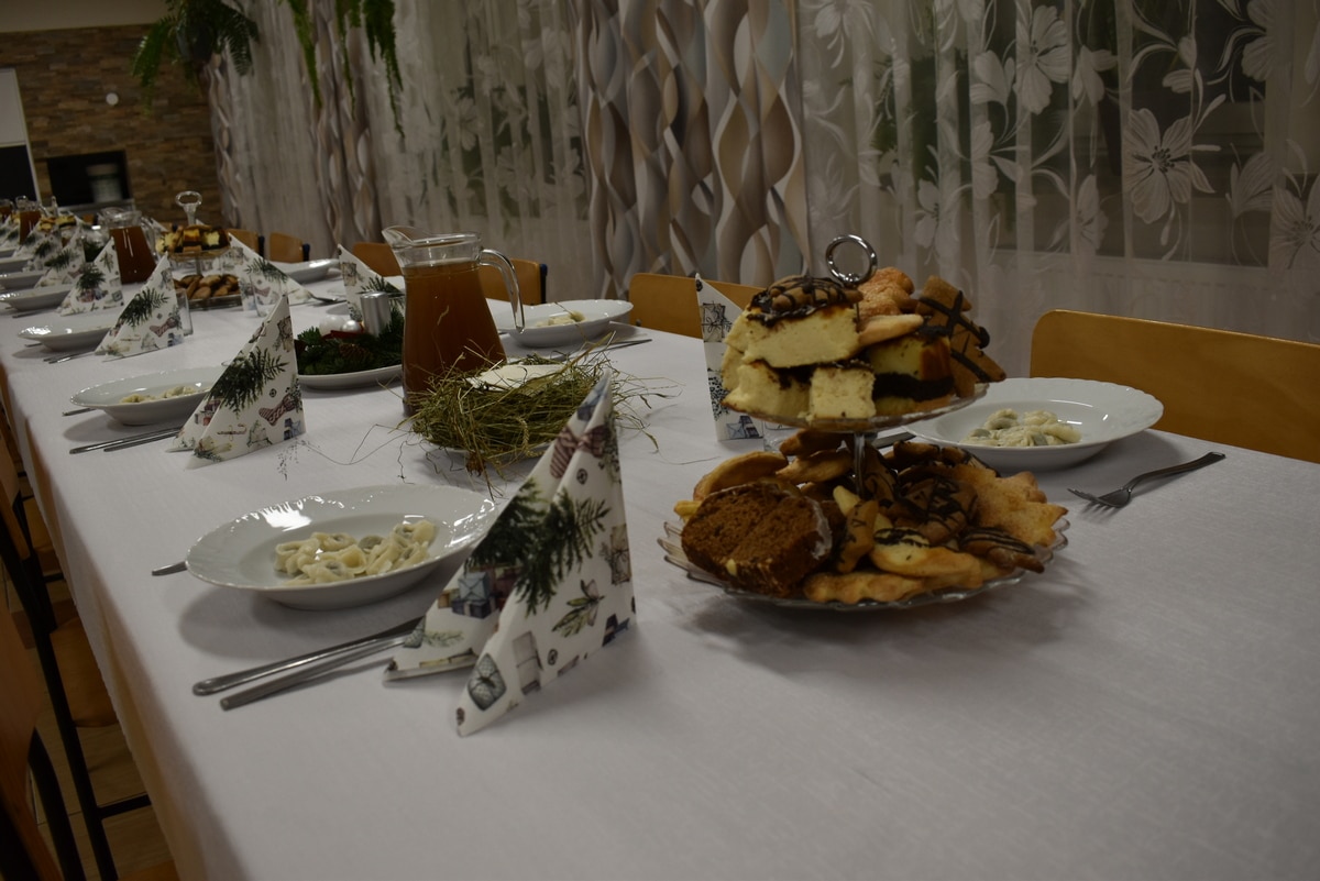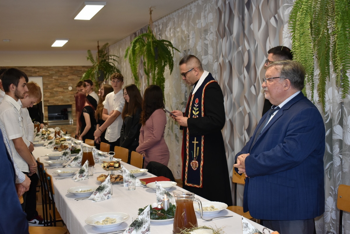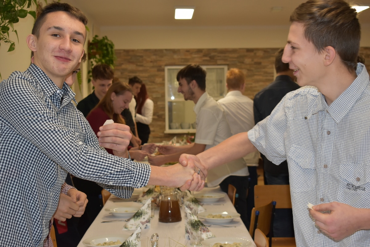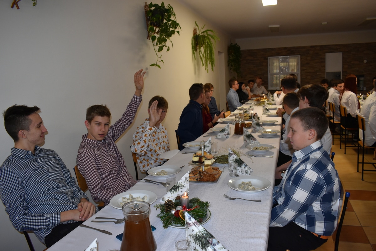 Zgodnie z tradycją, jak co roku wychowankowie internatu wraz z dyrekcją i wychowawcami zasiedli do stołu wigilijnego. Nasi koledzy piękną poezją i śpiewem kolęd umilili nam ten czas. Potrawy były pyszne, stoły pięknie ozdobione, a my wszyscy dzieląc się opłatkiem składaliśmy sobie życzenia na Boże Narodzenie i Nowy Rok.