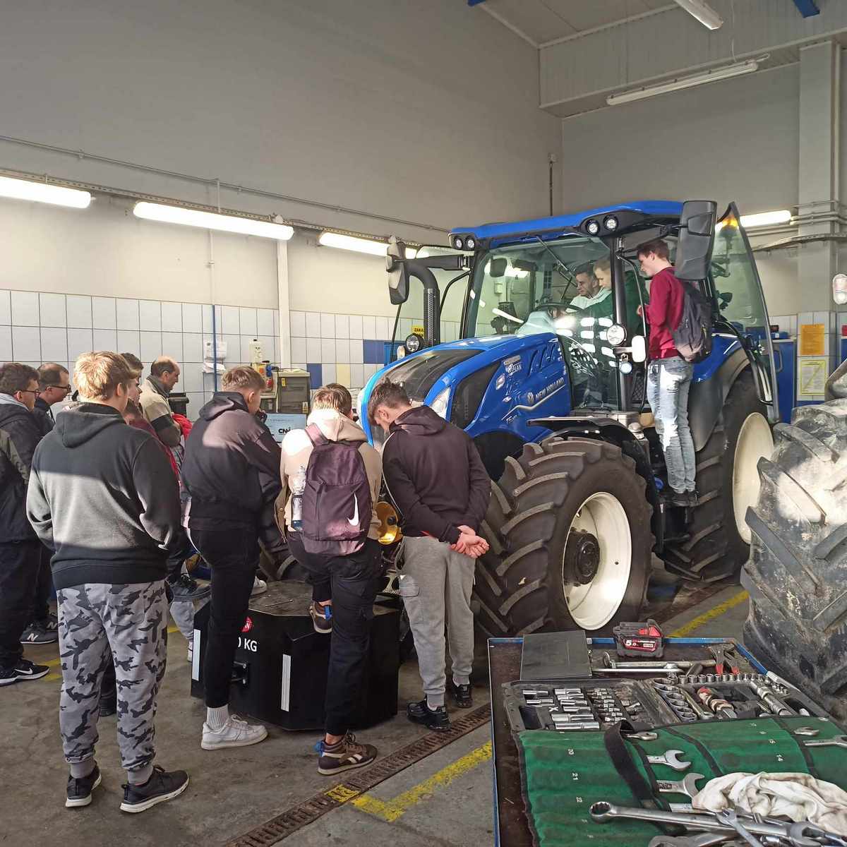 Struktura i funkcjonowanie nowoczesnego serwisu ciągników i maszyn rolniczych, diagnostyka komputerowa i telematyka w wydaniu NEW HOLLAND to zagadnienia poruszane podczas zajęć praktycznych wyjazdowych klasy V TMRiA. Nasi uczniowie dzięki uprzejmości firmy WIALAN swoje ostatnie zajęcia praktyczne przed egzaminem zawodowym spędzili na terenie serwisu