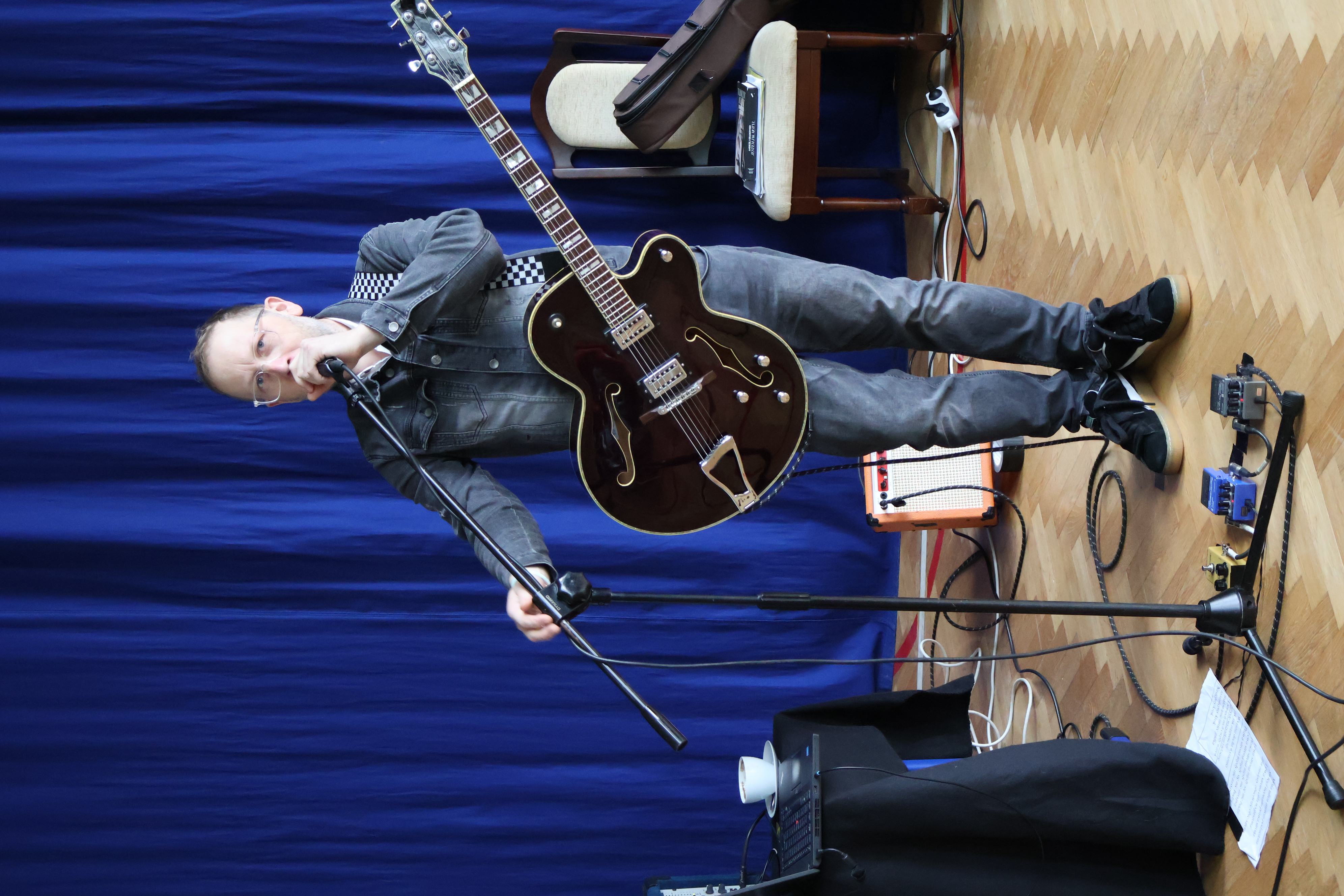 „Dbajmy o siebie”- to tytuł profilaktycznych warsztatów słowno-muzycznych, które odbyły się w naszej szkole w dniu 8 kwietnia. Prowadzącym spotkanie z młodzieżą był pan Krzysztof Niedźwiecki, muzyk, gitarzysta, kompozytor i producent muzyczny.
