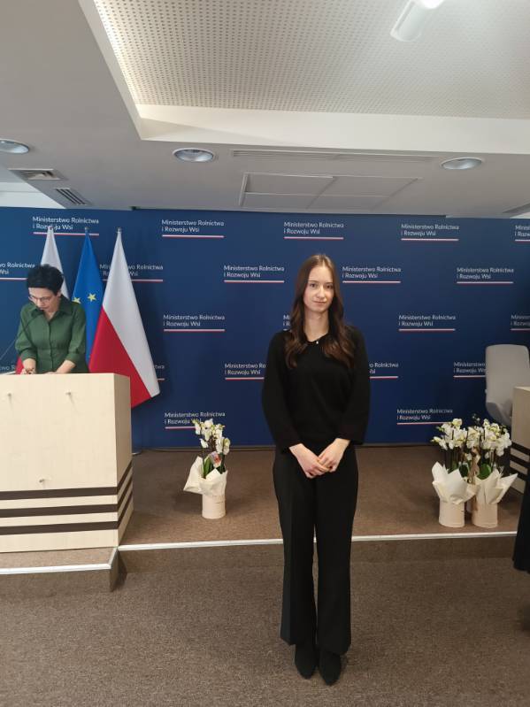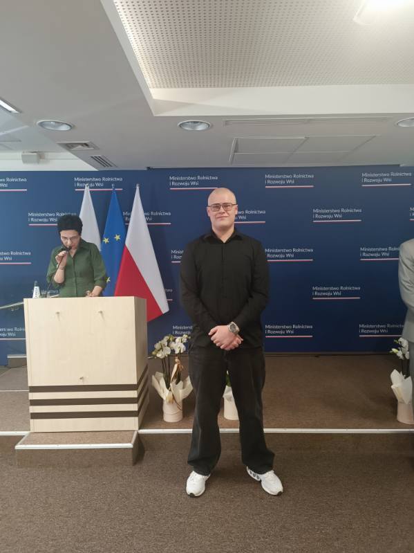Uczeń klasy 3 HTR Jakub Zawieska i uczennica 3 HTR Patrycja Ciosek dnia 5.03.2026 odebrali nagrodę i wyróżnienie w konkursach literackim i plastycznym podczas Gali Laureatów w Ministerstwie Rolnictwa i Rozwoju Wsi w Warszawie. Jakub otrzymał nagrodę za trzecie miejsce w XII Edycji Ogólnopolskiego Konkursu Literackiego pt. „Wiersz o Babci i Dziadku” za wiersz „Kompas życia”, a Patrycja została wyróżniona za pracę plastyczną w XXXII Edycji Ogólnopolskiego Konkursu Plastycznego pt. „Kwiaty dla Babci i Dziadka”. Nauczycielem prowadzącym przygotowania do konkursów była Katarzyna Łebkowska.
