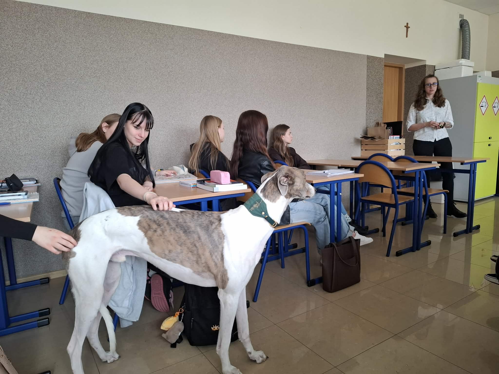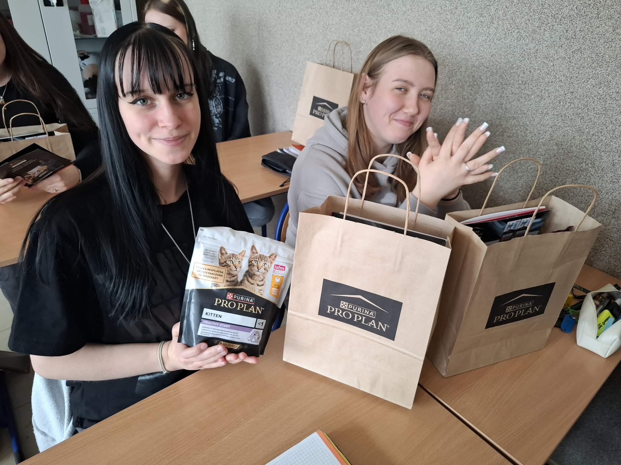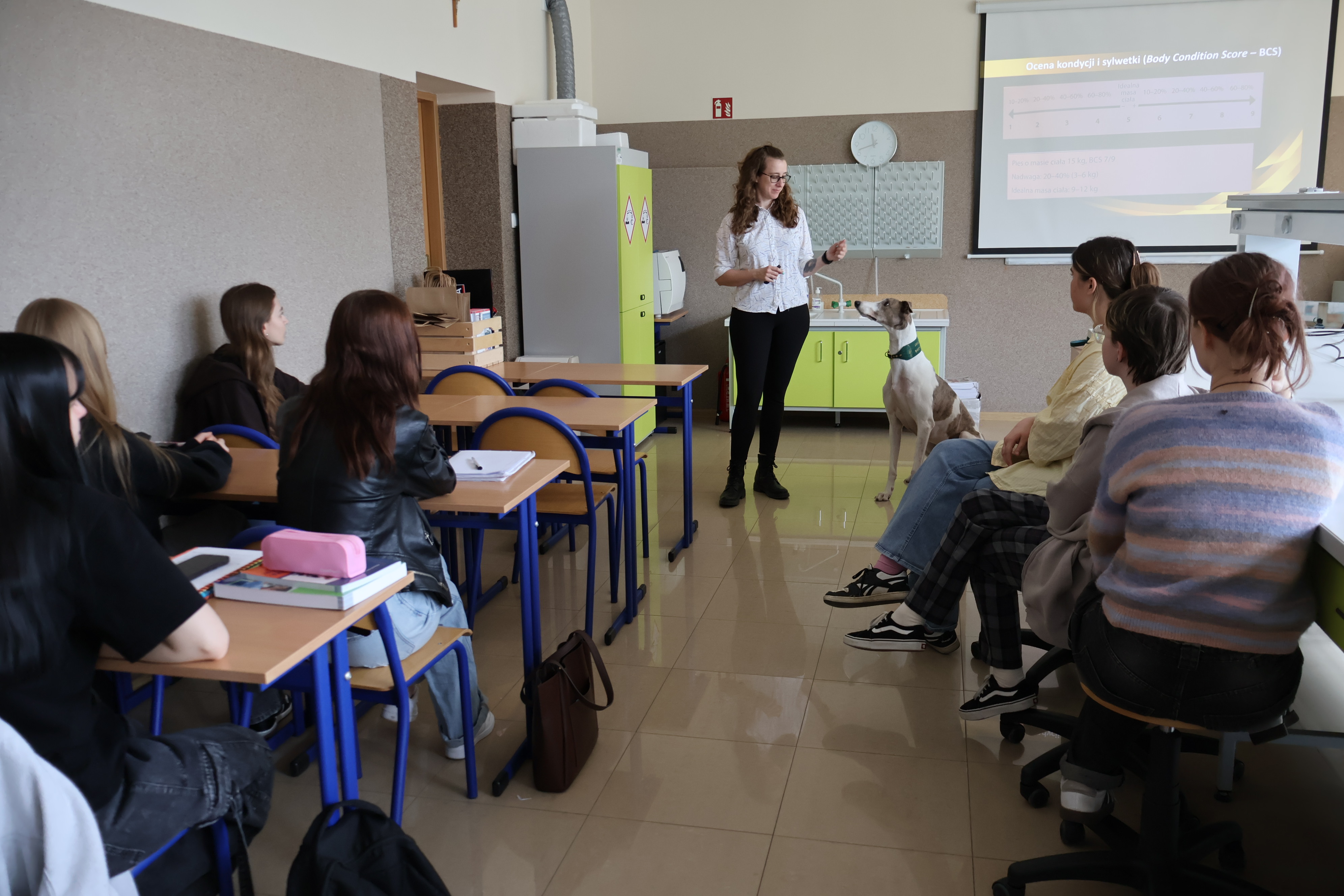Dnia 26 marca 2026 roku w klasie 4LTP na kierunku technik weterynarii odbyło się spotkanie z dr n. wet. Magdaleną Marszałek z firmy Nestlé Purina PetCare. Podczas zajęć Pani doktor omówiła podstawy prawidłowego żywienia psów i kotów oraz zwróciła uwagę na to, jak czytać i interpretować składy karm. Duży nacisk położony został również na choroby, które mogą wynikać z nieprawidłowej diety u zwierząt, co spotkało się z dużym zainteresowaniem uczniów. Spotkanie miało bardzo praktyczny charakter – uczniowie aktywnie uczestniczyli w dyskusji, zadawali pytania i mogli sprawdzić swoją wiedzę w krótkich konkursach. Zajęcia były wartościowym uzupełnieniem wiedzy z zakresu dietetyki weterynaryjnej i pozwoliły lepiej zrozumieć, jak ogromne znaczenie ma prawidłowe żywienie w profilaktyce i leczeniu chorób u zwierząt.