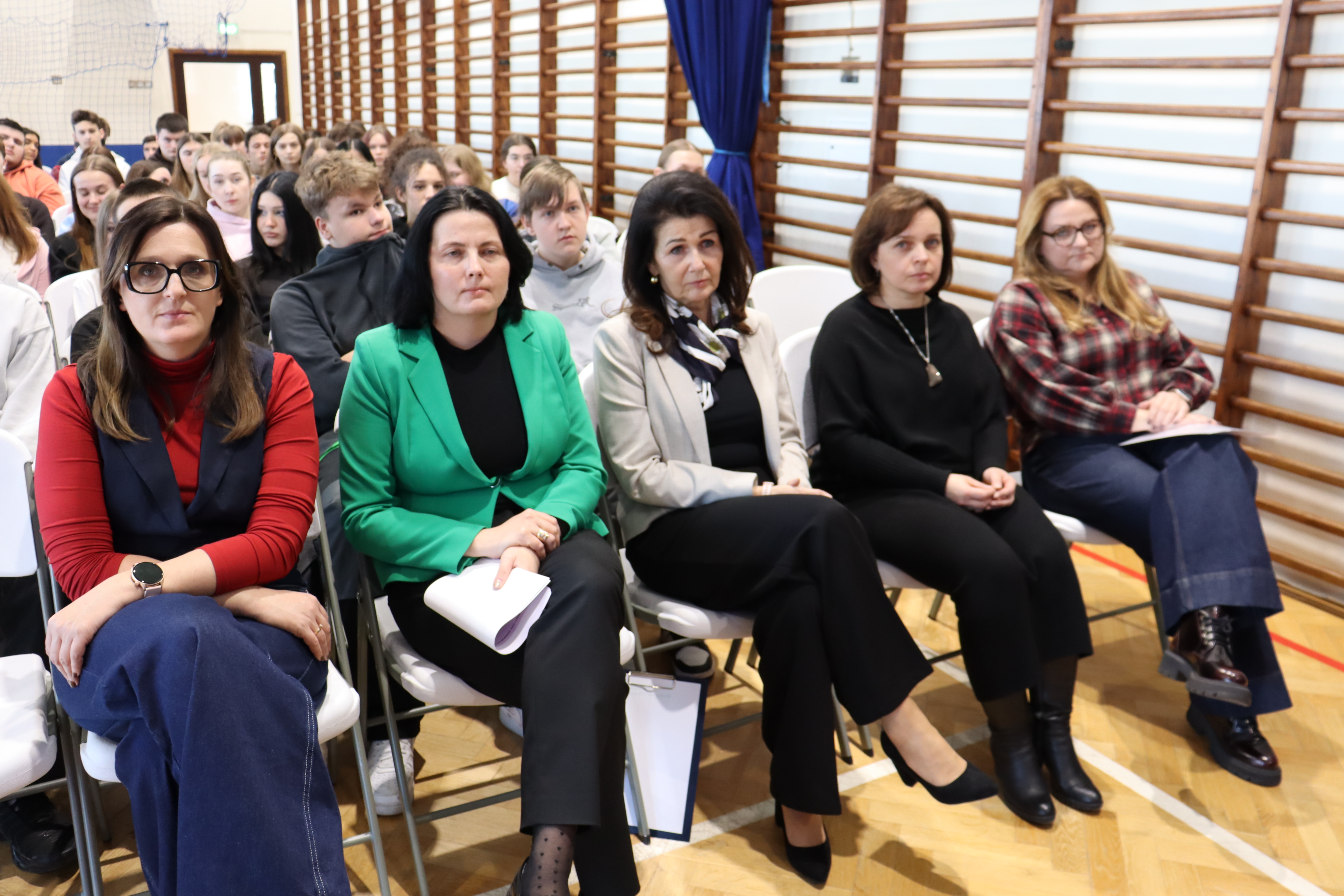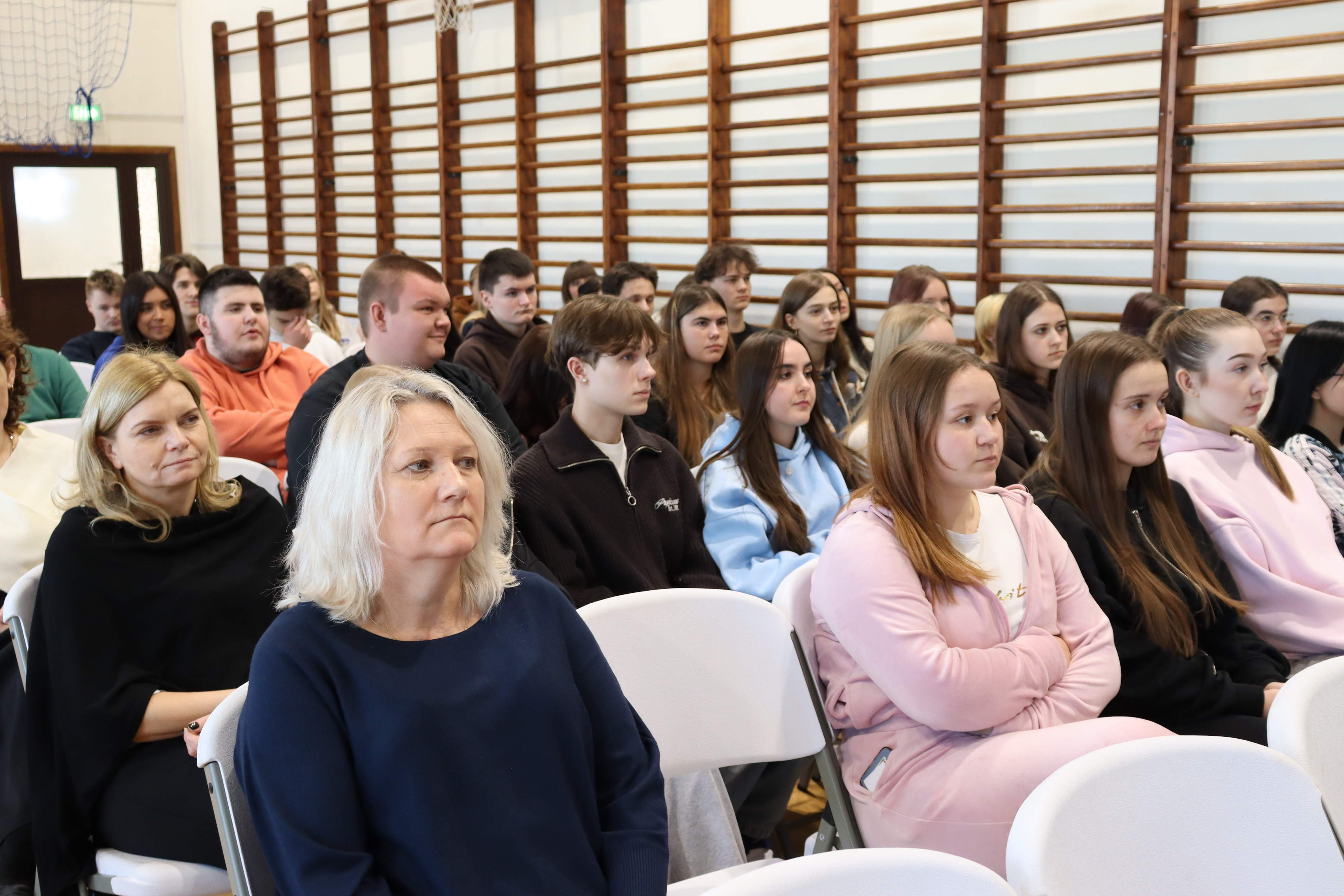 W ostatnim dniu przed feriami wszyscy uczniowie zostali zaproszeni na spotkanie na sali gimnastycznej, gdzie zaplanowano podsumowanie pracy i nauki w pierwszym półroczu roku szkolnego 2025/26. Zgromadzonym na sali pani wicedyrektor przedstawiła uczniów z najwyższymi średnimi ocen i 100% frekwencją. Przypomniała o licznych wydarzeniach, wyjazdach, wycieczkach i innych formach działalności szkoły w pierwszym półroczu. Pani wicedyrektor ogłosiła też konkursy dla klas, a wśród nich: na najwyższą frekwencję i najwyższą średnią ocen. Następnie głos zabrała pani dyrektor gratulując wyróżnionym i podkreślając, że pierwsze półrocze pozwoliło wszystkim na wyciągnięcie wniosków dotyczących własnych mocnych i słabszych stron. Zachęciła, by zdobyte doświadczenia stanowiły podstawę do dalszego rozwoju i motywowały do jeszcze większego zaangażowania w drugim półroczu roku szkolnego.