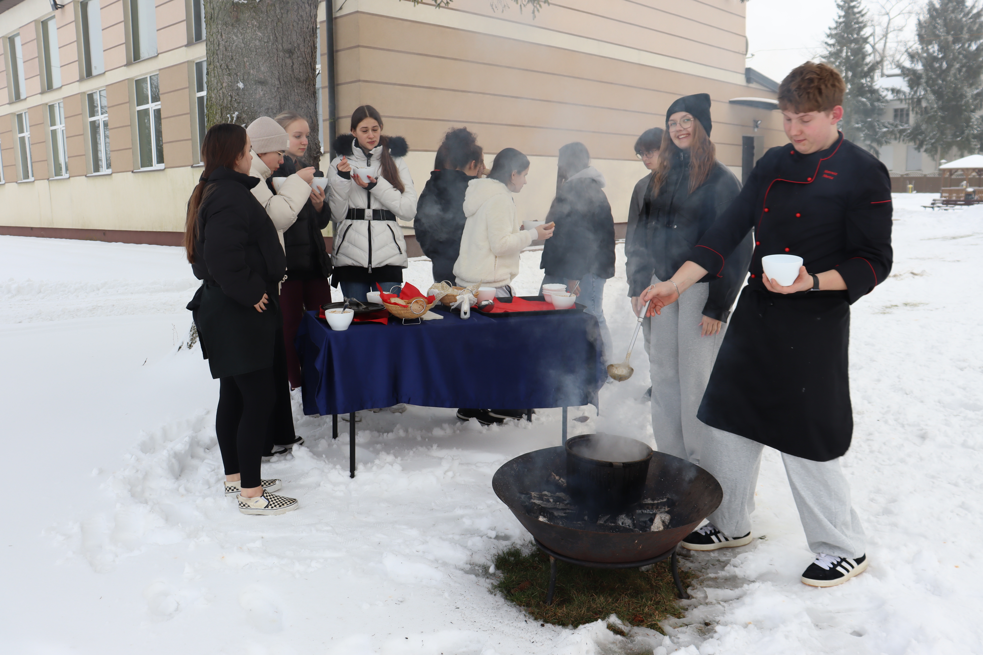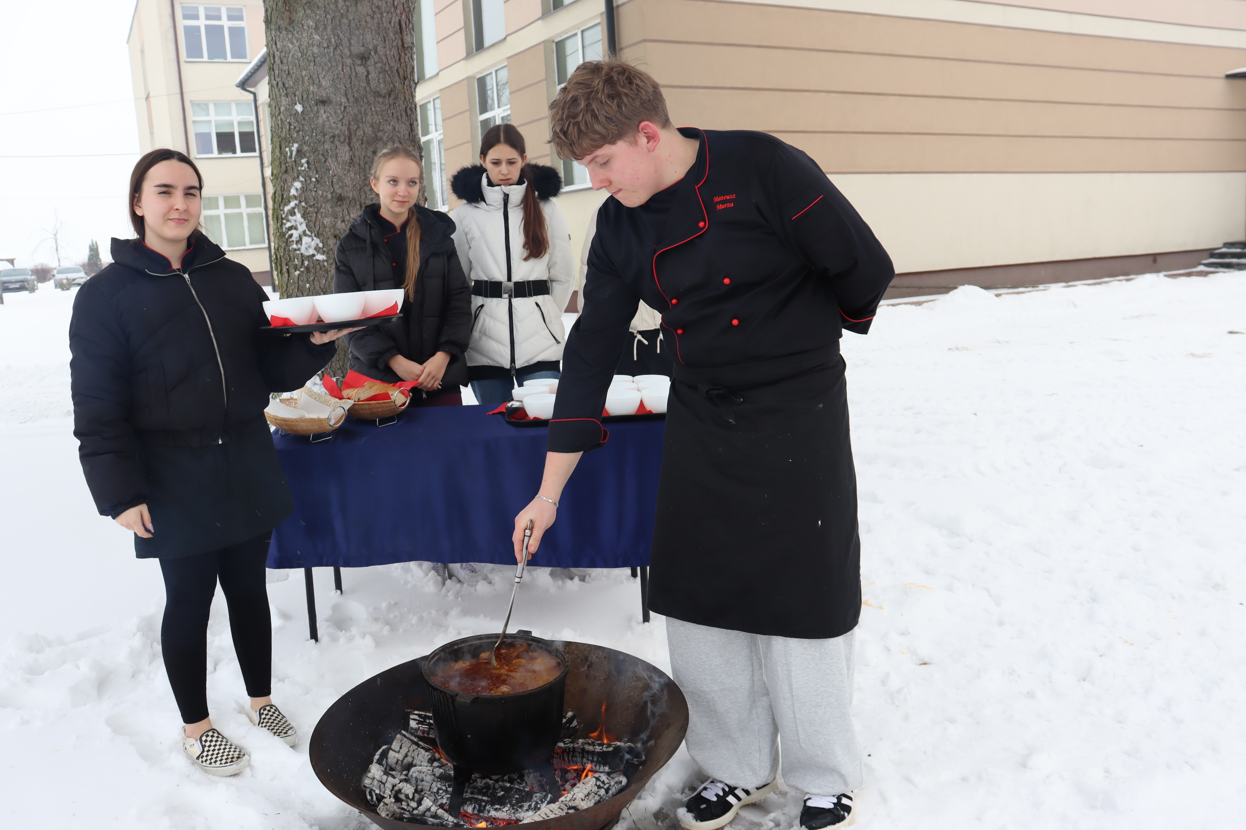 Uczniowie klasy 4 technikum kształcącego w zawodzie technik żywienia i usług gastronomicznych wzięli udział w plenerowych zajęciach praktycznych poświęconych przygotowywaniu potraw z dziczyzny. Zajęcia odbyły się w zimowej scenerii, co nadało im niepowtarzalny charakter i pozwoliło połączyć naukę z bezpośrednim kontaktem z naturą.