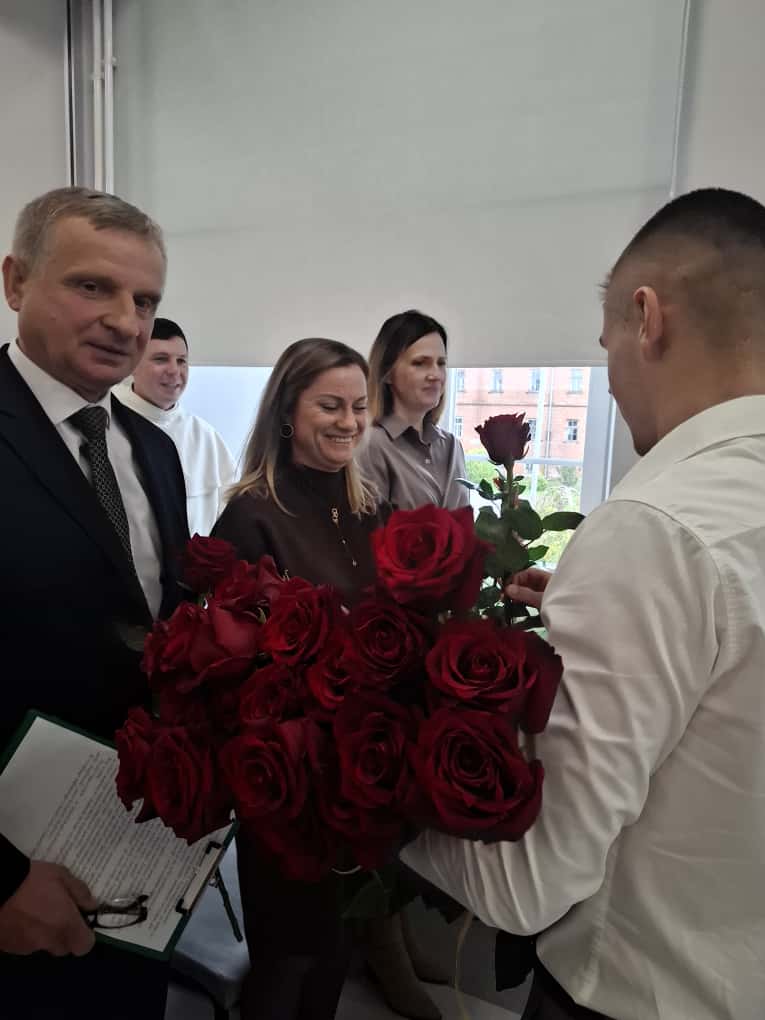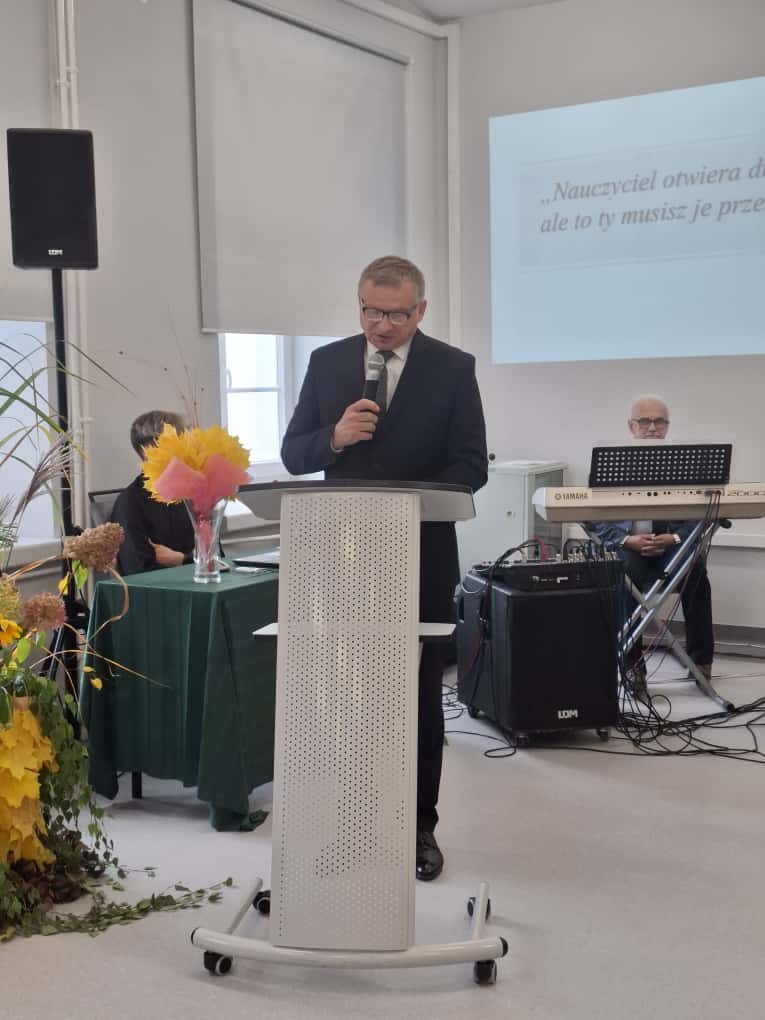 Natomiast w imieniu rodziców głos zabrał Pan Wojciech Niedźwiedziuk, który podkreślił obecność „ducha pedagogicznego” w Leśnej Podlaskiej i życzył satysfakcji z wykonywanej pracy wszystkim nauczycielom i pracownikom szkoły.