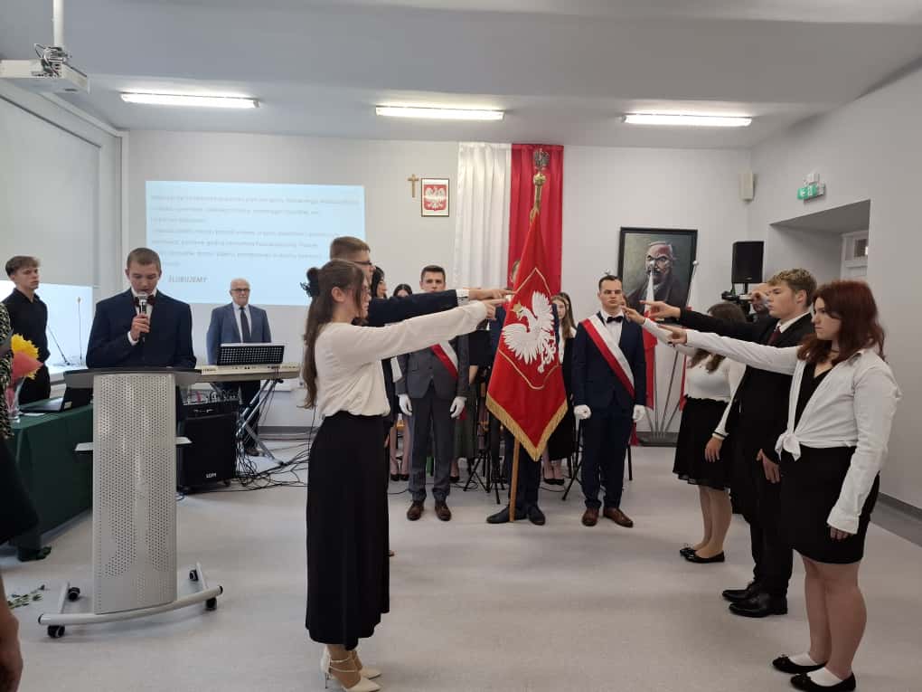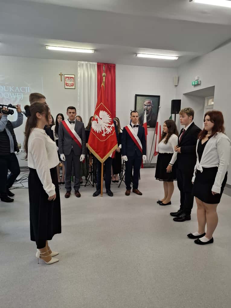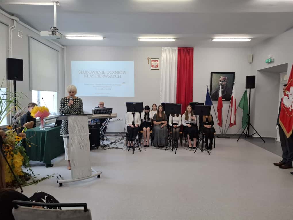 W imieniu Samorządu Uczniowskiego głos zabrała Martyna Junkiewicz – uczennica klasy czwartej Technikum w zawodzie technik żywienia i usług gastronomicznych, która powitała pierwszoklasistów w gronie społeczności szkolnej i przekazała serdeczne życzenia wszystkim nauczycielom i pracownikom szkoły.