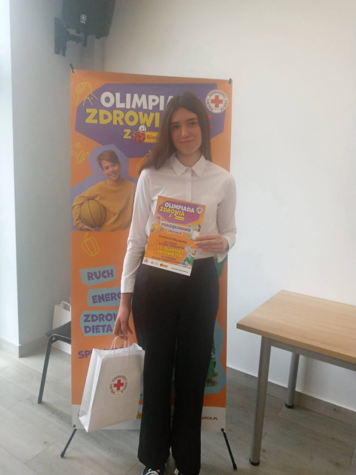 w eliminacjach szkolnych i rejonowych, dzięki czemu reprezentowała powiat bialski na etapie okręgowym. O końcowym wyniku decydowała łączna liczba punktów z testu oraz oceny dokumentacji akcji prozdrowotnej. Zuzannie nie udało się awansować do finału ogólnopolskiego, jednakże w kwalifikacji końcowej etapu okręgowego zajęła 5 miejsce. Gratulujemy i życzymy dalszych sukcesów za rok.