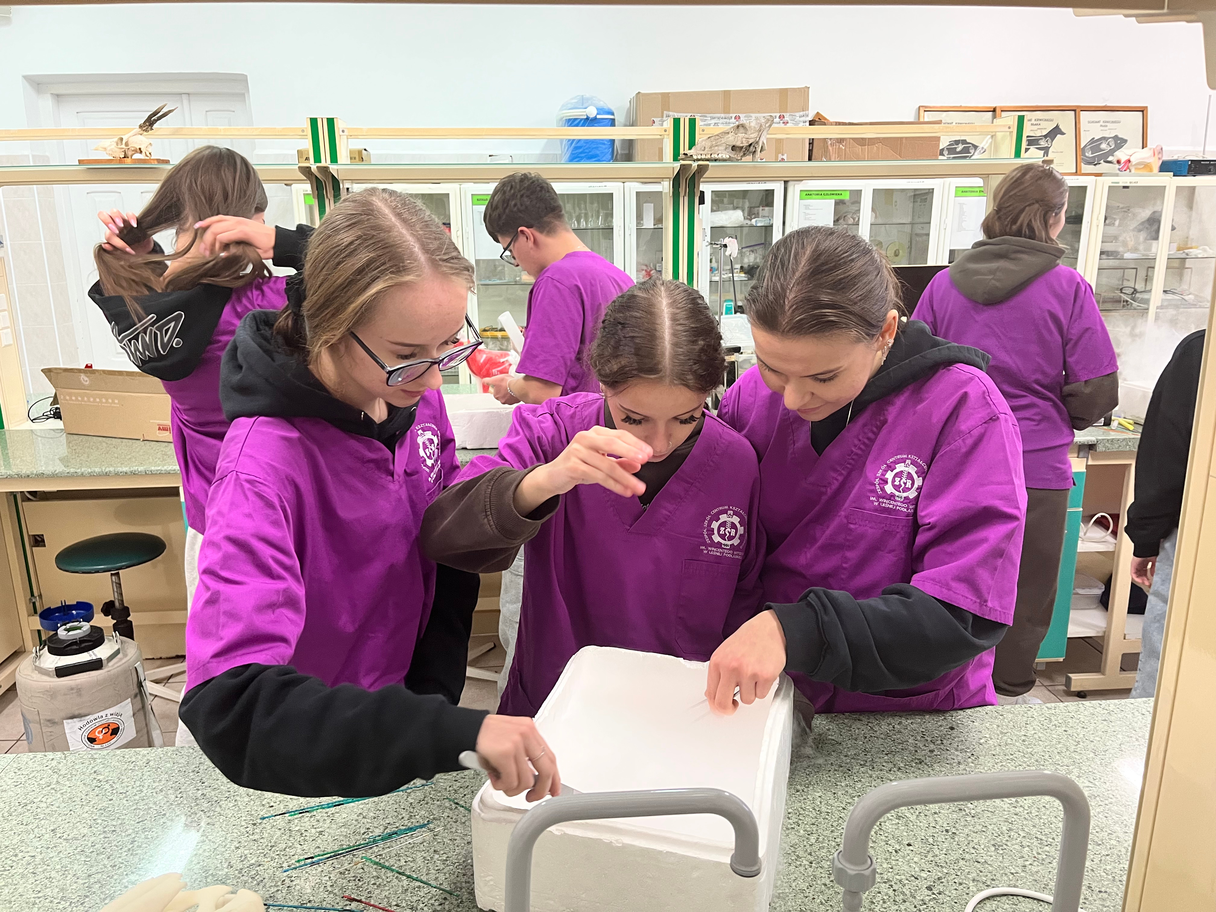 W ramach projektu „Akademia kompetencji – Program rozwojowy ZSCKR w Leśnej Podlaskiej” 10 uczniów kształcących się w zawodzie technik weterynarii uczestniczyło w kursie inseminacji bydła i trzody chlewnej. Kolejnych 20 uczniów zostanie przeszkolonych w powyższym zakresie w II okresie roku szkolnego 2025/2026.