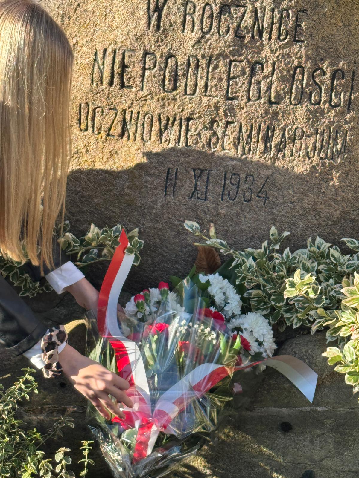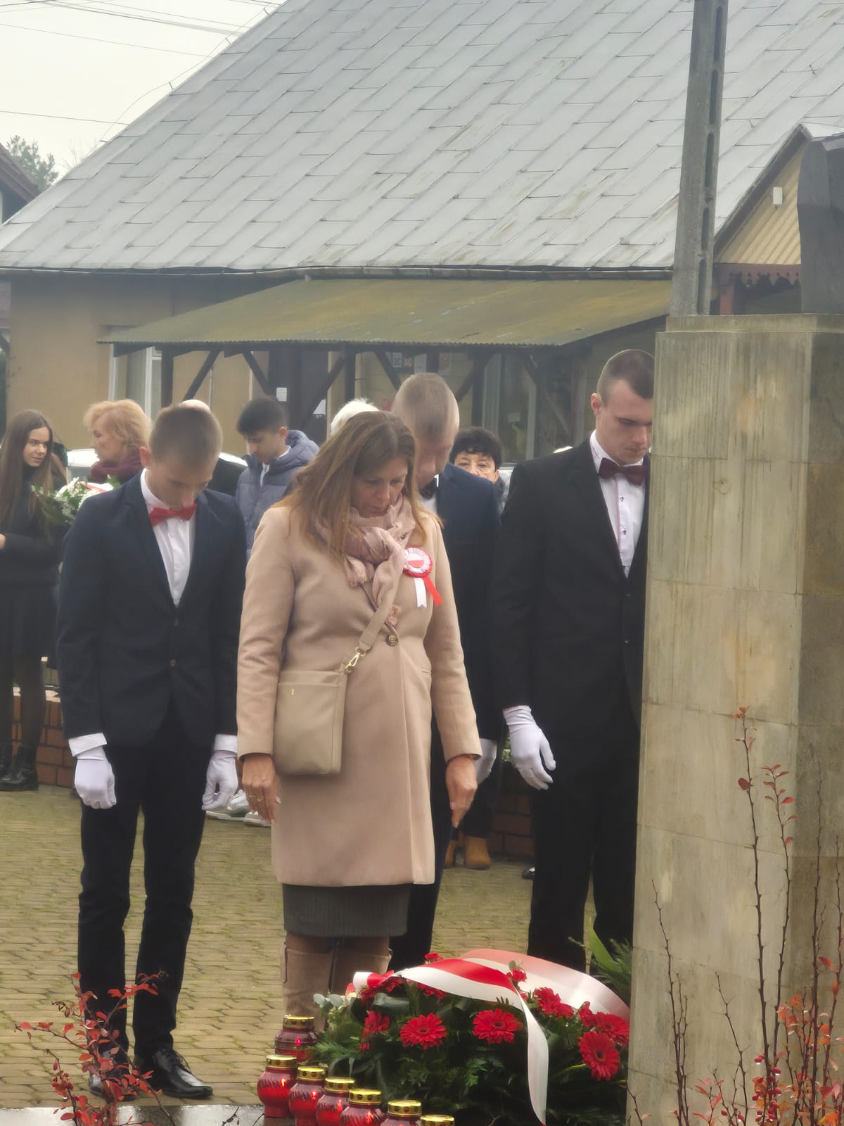 11.11.2025r. społeczność naszej szkoły wzięła również udział w gminnych obchodach Święta Niepodległości w Leśnej Podlaskiej. Pani Wicedyrektor Beata Kalwarczyk – Warpas, delegacja nauczycieli i uczniów uczestniczyli we Mszy Świętej w intencji Ojczyzny w Sanktuarium Matki Bożej Leśniańskiej oraz złożyli kwiaty pod pomnikiem Marszałka Józefa Piłsudskiego.
