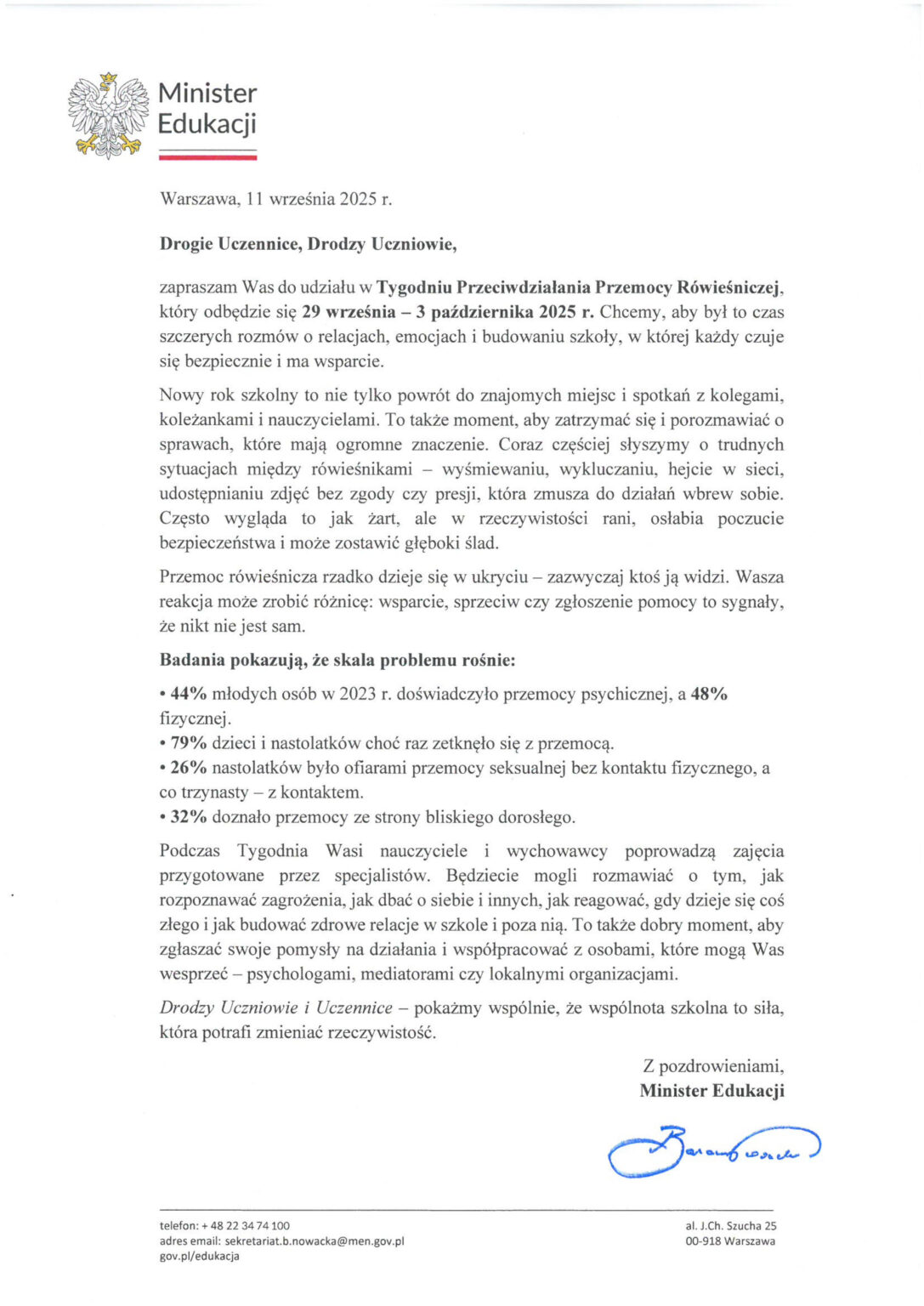 Tydzień Przeciwdziałania Przemocy Rówieśniczej 29 września - 3 października 2025 r.