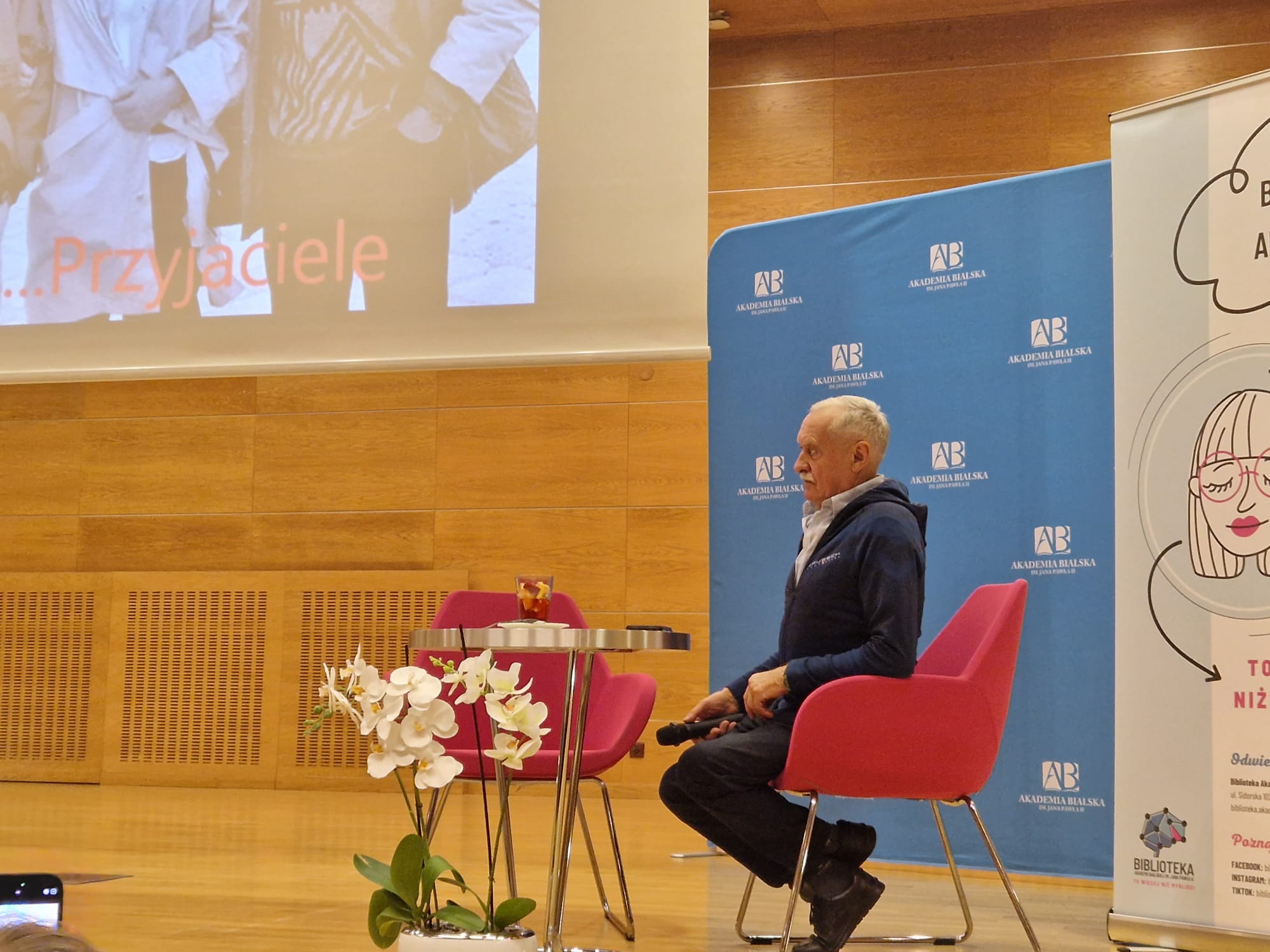 Ostatnim punktem wycieczki była wizyta w Akademii Bialskiej, gdzie odbyło się spotkanie z Krzysztofem Wielickim, jednym z najwybitniejszych polskich himalaistów, uczestnikiem historycznych wypraw wysokogórskich oraz prelegentem znanym z wykładów motywacyjnych. Pan Krzysztof Wielicki wygłosił wykład pod tytułem „Przegrana bitwa to nie przegrana wojna. Walka o K2”. Podczas wykładu uczniowie jak i cała publiczność ze skupieniem słuchali o wyprawach pana Krzysztofa, podejmowaniu trudnych, wymagających odwagi decyzji, determinacji w dążeniu do celu oraz o tym jak ważne jest zapisywanie się w kartach historii czy to własnej, prywatnej, czy też historii kraju oraz świata.