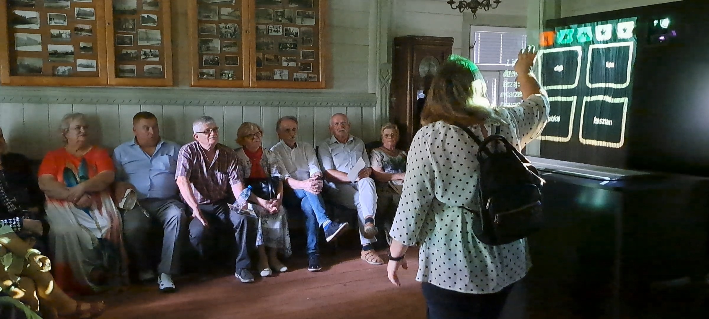 Następnie spotkanie przeniosło się do zabytku Domku Kseni uhonorowanego nagrodą Laura Konserwatorskiego. Leśniacy byli zachwyceni zwiedzanym obiektem, a także multimedialnymi treściami prezentowanymi na ekranie mgłowym i ekranie dotykowym.