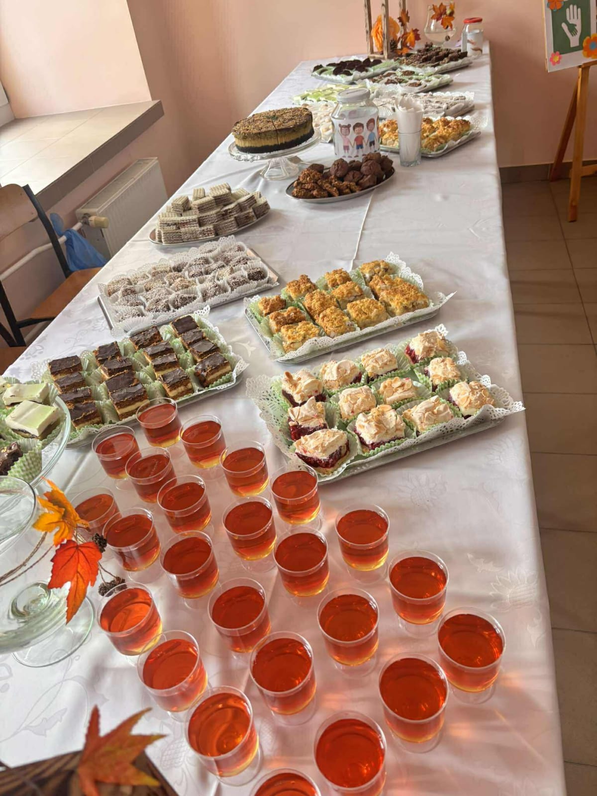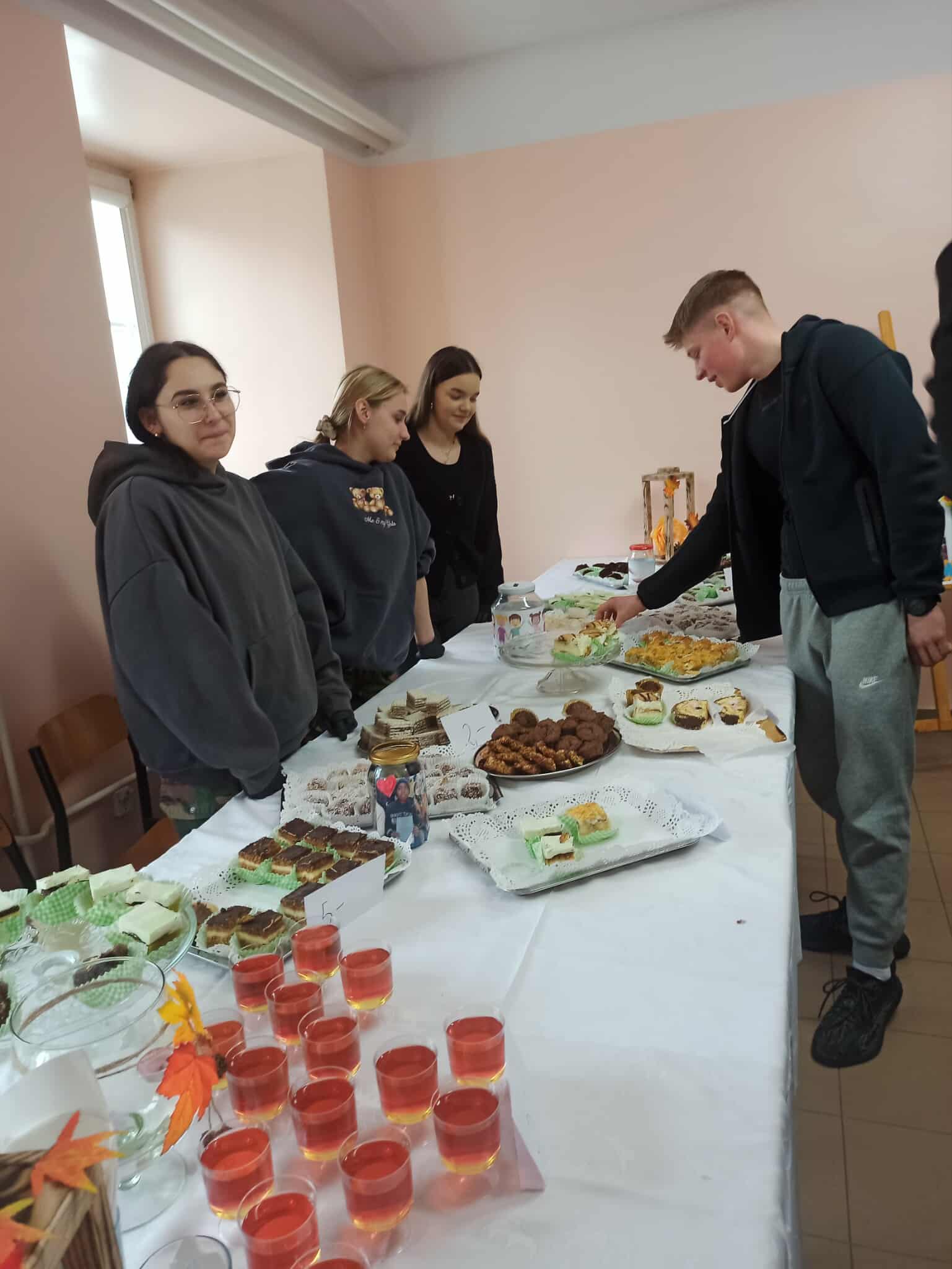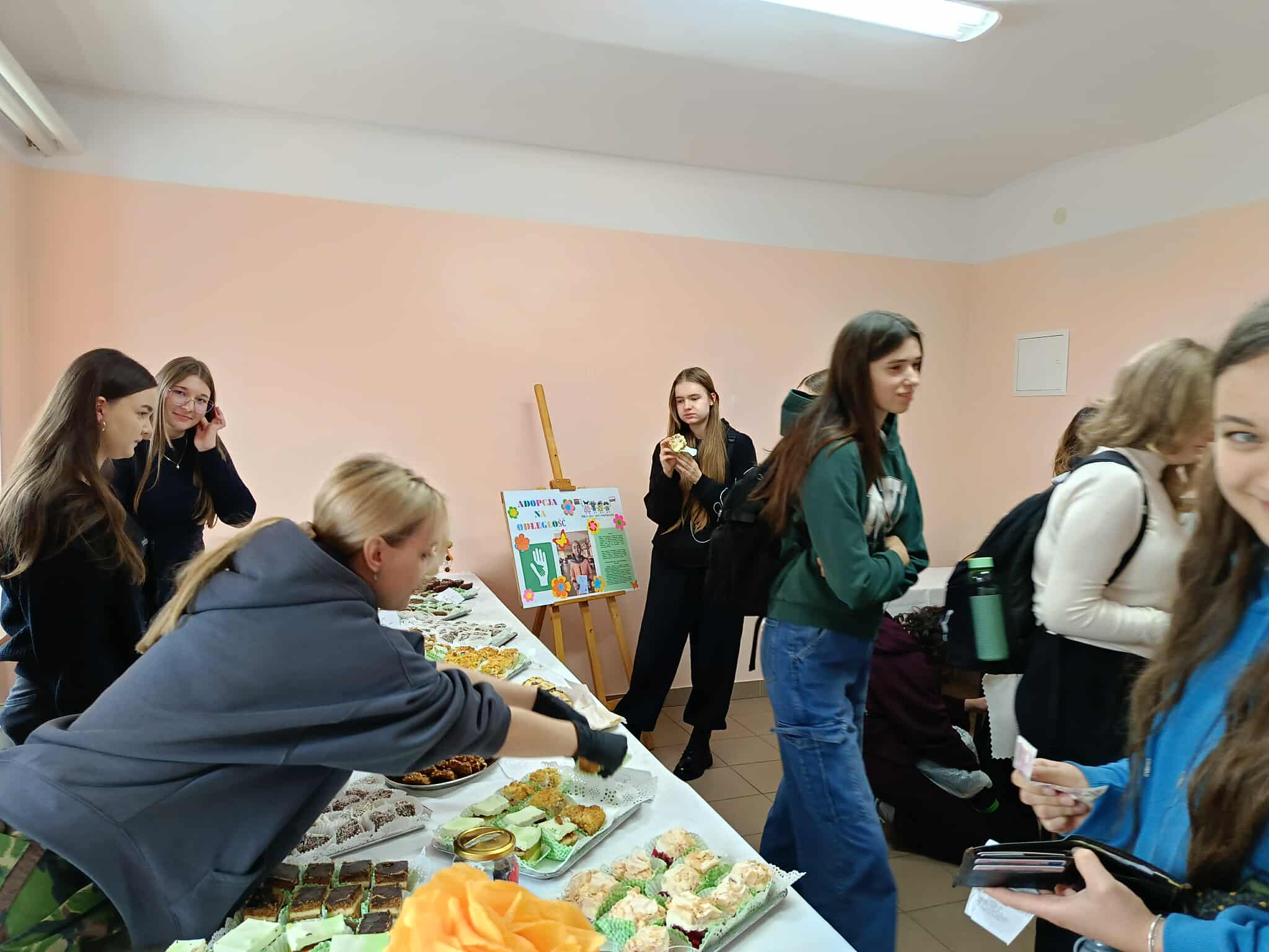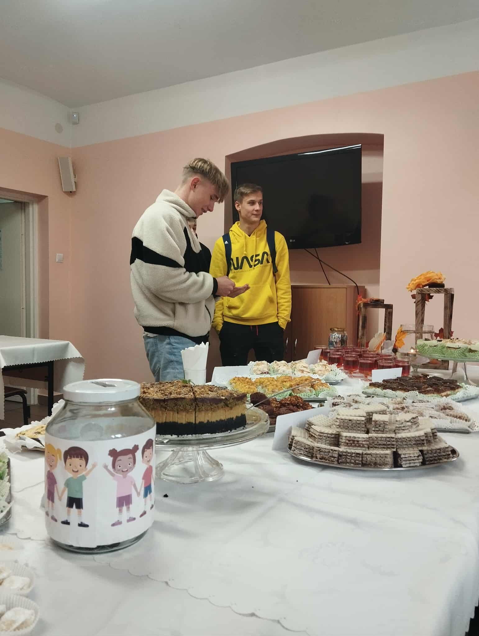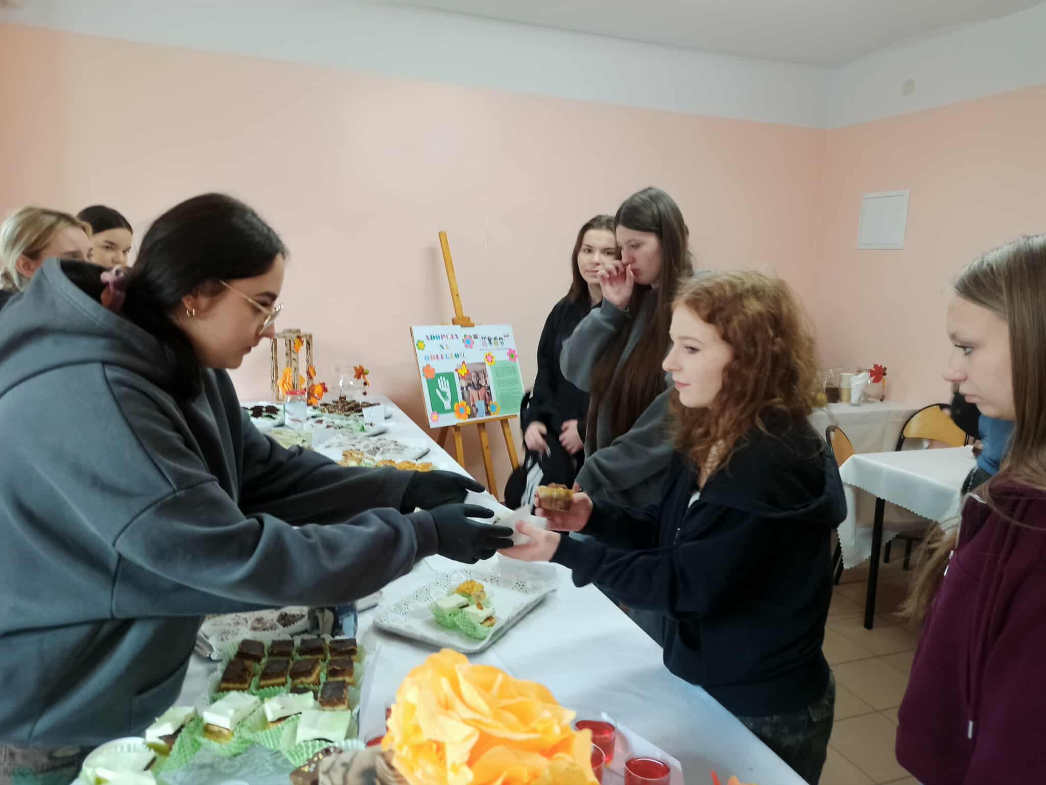 Dzięki wspólnemu zaangażowaniu i uprzejmości Dyrekcji Szkoły, która udostępniła nam salę nr 6, stworzyliśmy słodką kawiarenkę. Nauczyciele, pracownicy szkoły oraz uczniowie na przerwach mogli skosztować słodkości i wypić ciepłą herbatę. W godzinach popołudniowych akcja była kontynuowana w internacie, gdzie młodzież mogła wesprzeć ten szczytny cel.