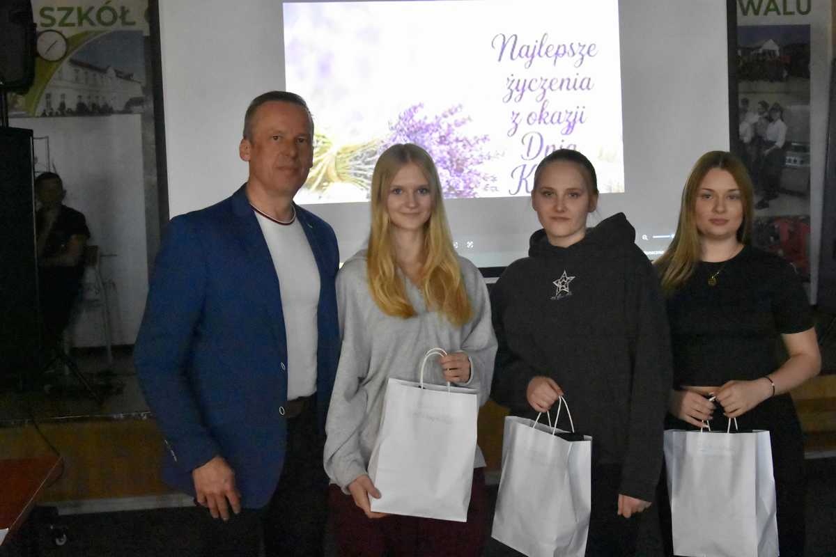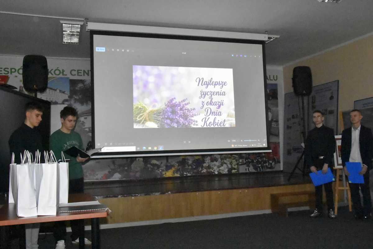 Dnia 11 marca w auli szkoły odbyła się uroczystość związana z Międzynarodowym Dniem Kobiet. Przedstawiciele brzydszej płci przygotowali krótki program artystyczno-rozrywkowy, który w interesujący i dowcipny sposób przedstawił rolę i znaczenie Pań w życiu społecznym, a także indywidualnym chłopców i mężczyzn. Nie zabrakło aforystycznych określeń, celnych spostrzeżeń, a także lirycznych tekstów i piosenek. Na koniec pan Dyrektor oraz uczniowie złożyli paniom nauczycielkom, paniom z administracji i obsługi szkoły oraz wszystkim uczennicom najlepsze życzenia, zaś przy wtórze nastrojowej muzyki wręczyli także słodkie upominki i kwiaty. Po tej uroczystości pan Dyrektor wręczył ponadto laureatom konkursów zawodowych, sportowych, artystycznych i literackich pamiątkowe dyplomy oraz upominki.