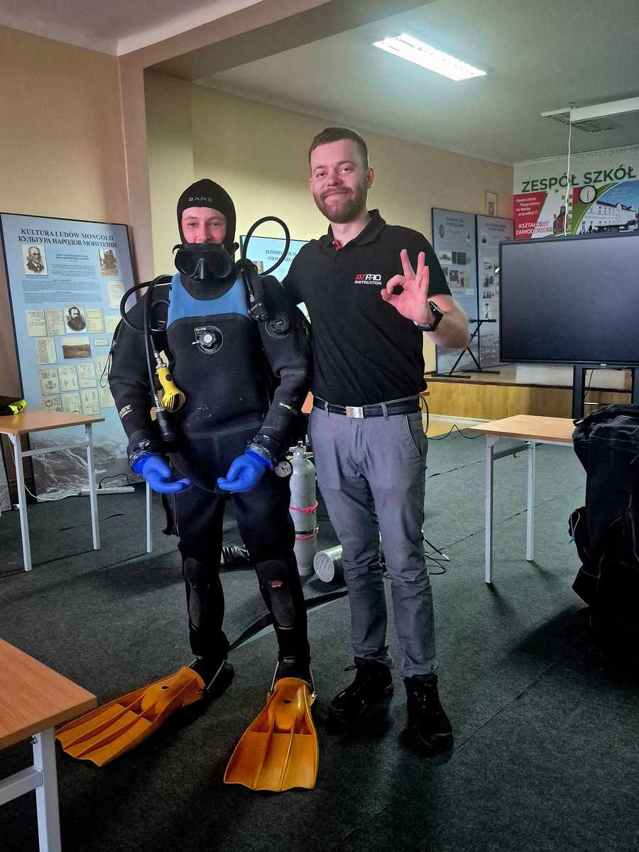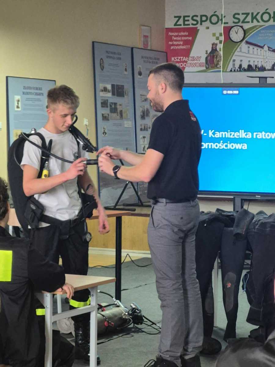 Pan Mikołaj w bardzo przystępny sposób opowiedział o specyfice pracy nurka, realiach tej wymagającej profesji oraz o tym, jakie predyspozycje i umiejętności są w niej kluczowe. Uczniowie mogli dowiedzieć się, w jakich warunkach odbywają się nurkowania, z jakimi wyzwaniami mierzą się nurkowie oraz jak ważne są odpowiednie przygotowanie i dyscyplina.