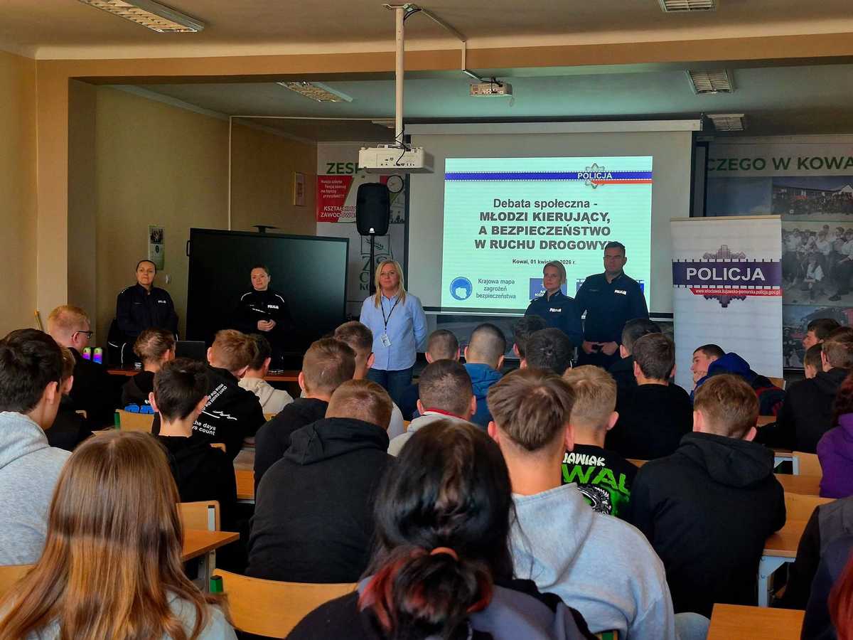 Dziś w naszej szkole gościliśmy przedstawicieli Wydziału Prewencji Komendy Miejskiej Policji we Włocławku oraz funkcjonariuszy Policji z Komisariatu w Kowalu. Spotkanie z młodzieżą poświęcone było tematowi „Młodzi kierujący, a bezpieczeństwo w ruchu drogowym”.
