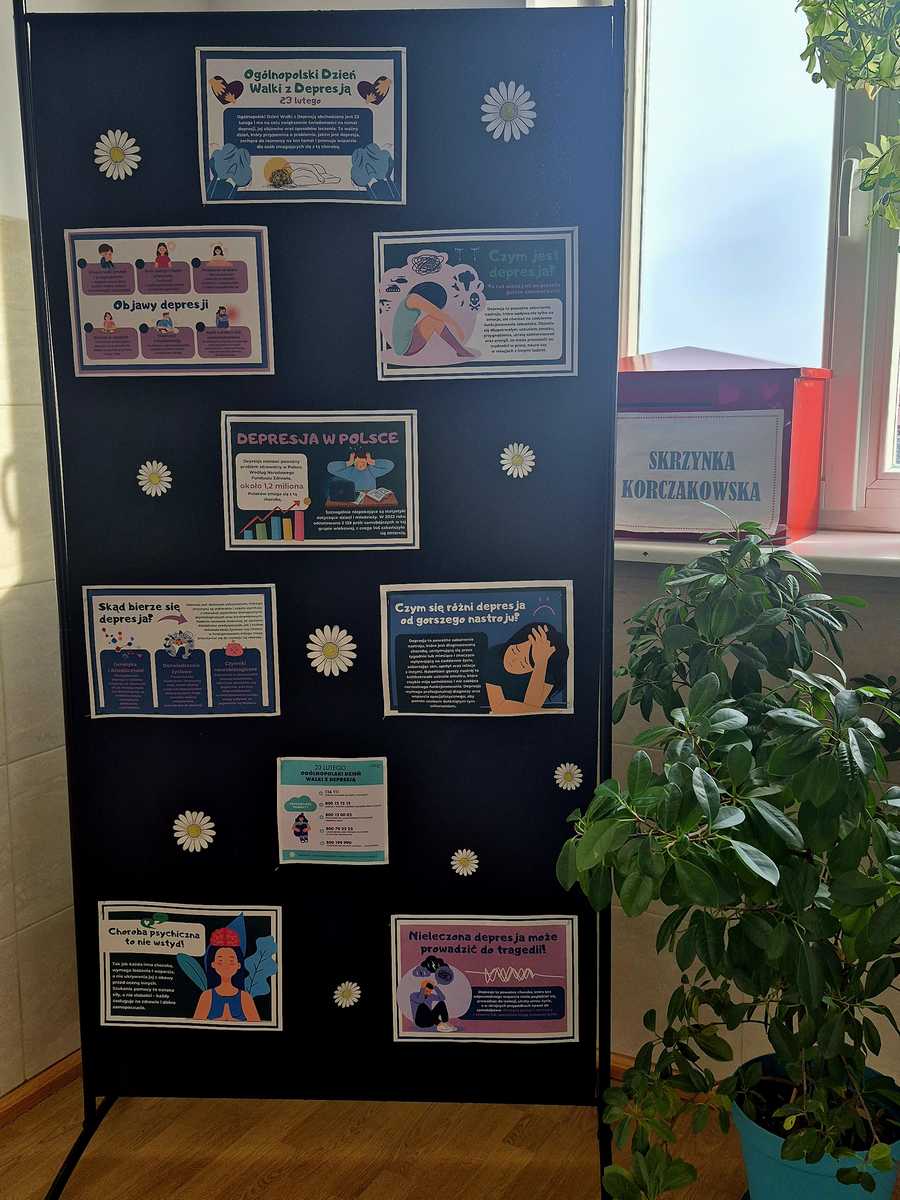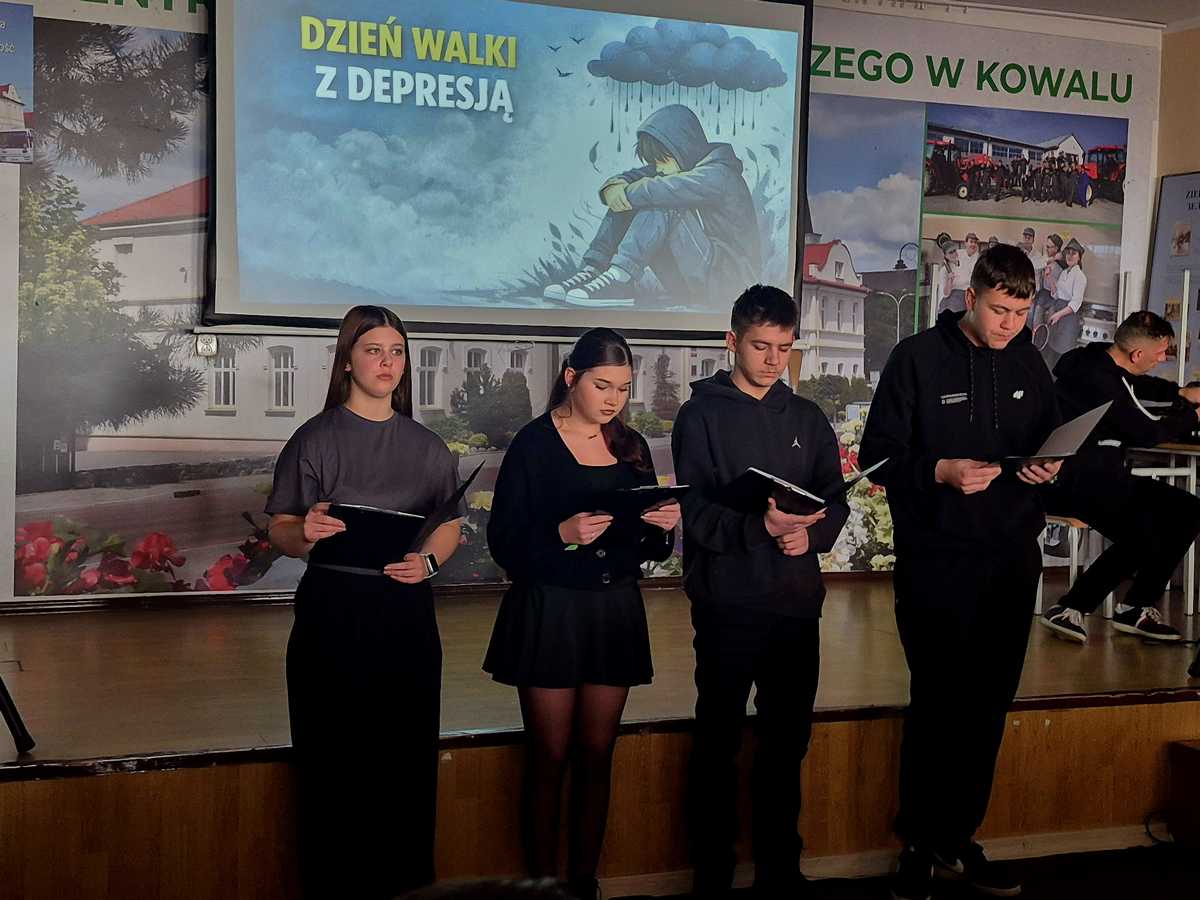 W piątek 27 lutego br. społeczność naszej szkoły zebrała się na uroczystym apelu poświęconym Ogólnopolskiemu Dniu Walki z Depresją. Było to ważne spotkanie, podczas którego rozmawialiśmy o tym, czym jest depresja, jak rozpoznawać jej objawy oraz jak istotne jest wzajemne wsparcie, empatia i uważność na drugiego człowieka. Przypomnieliśmy, że proszenie o pomoc jest oznaką siły, a rozmowa często bywa pierwszym krokiem do odzyskania nadziei.