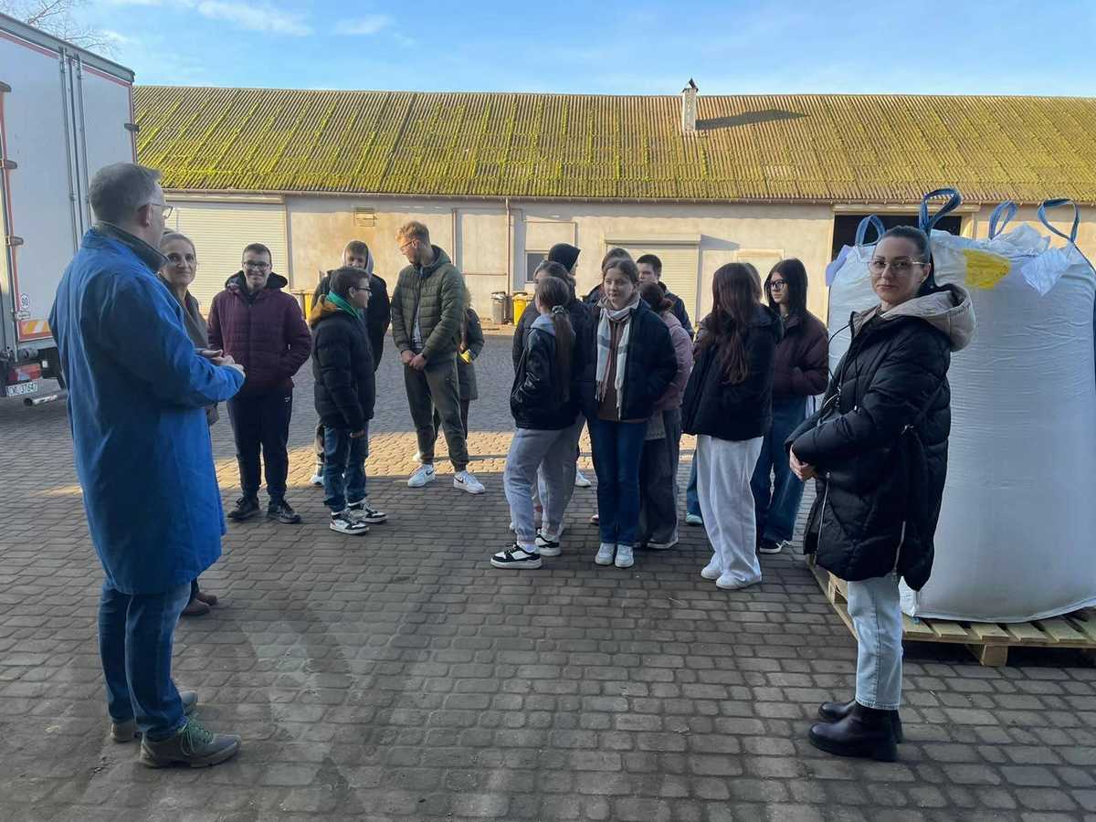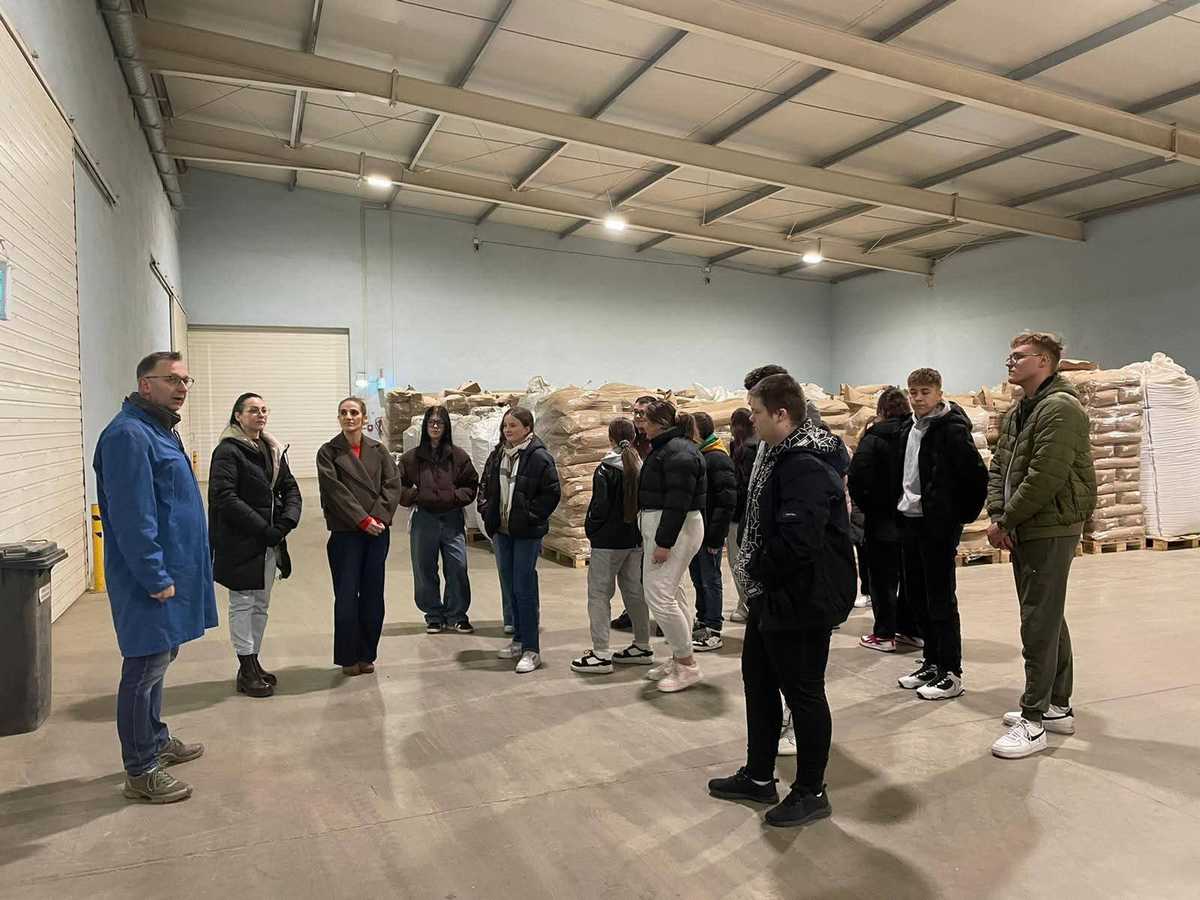 Pan Marcin oprowadził młodzież po całym obiekcie, szczegółowo omawiając proces suszenia oraz przygotowania ziół. Uczniowie dowiedzieli się, że suszarnia specjalizuje się w produkcji ziół wykorzystywanych nie tylko w gastronomii, ale także w kosmetyce, a nawet jako dodatek do pokarmu dla krewetek.