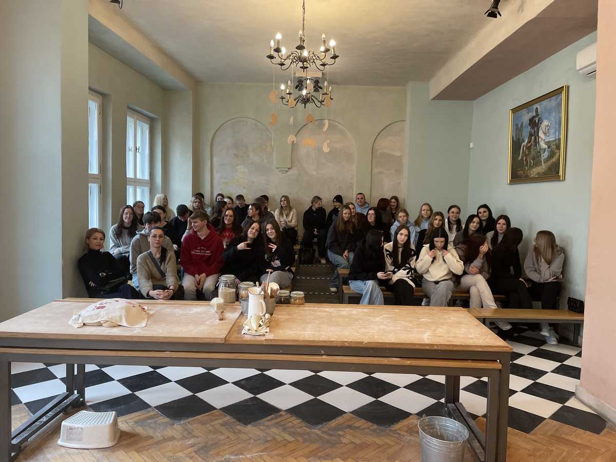 Jednym z najciekawszych punktów programu były warsztaty robienia Rogali Świętomarcińskich. Uczniowie mieli okazję poznać technologię produkcji tych tradycyjnych poznańskich wypieków, dowiedzieć się, jakie składniki są niezbędne do ich przygotowania oraz poznać tajniki receptury przekazywanej z pokolenia na pokolenie. Było to niezwykle cenne doświadczenie, szczególnie dla młodzieży kształcącej się w zawodach związanych z żywieniem.