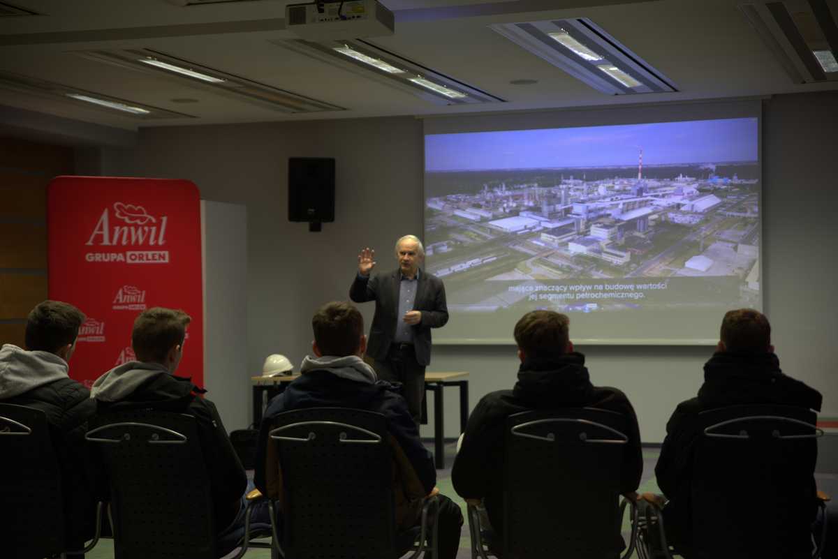 Podczas wizyty uczniowie wysłuchali prezentacji dotyczącej historii i działalności firmy, a następnie zwiedzili wybrane części zakładu. Pracownicy ANWIL opowiedzieli o procesie wytwarzania nawozów azotowych, produkcji PVC oraz zasadach bezpieczeństwa obowiązujących w zakładzie.