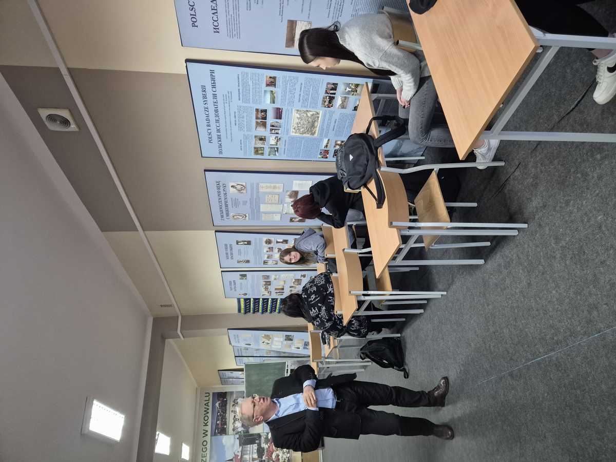W auli naszej szkoły od stycznia do kwietnia br. można oglądać wystawę pn. „POLSCY BADACZE SYBERII”. Została ona przygotowana przez pracowników Polskiej Akademii Nauk i była prezentowana w rozlicznych miastach Polski i Rosji, bo opisy zdjęć i dokumentów wydrukowane są po polsku i rosyjsku. Ta ciekawa ekspozycja przedstawia polskich zesłańców, którzy wnieśli swoją pasję poznawczą w eksplorowanie i opisanie zarówno dziewiczej przyrody syberyjskiej, jak i mieszkających tam tubylczych ludów, takich jak Ajnowie, Tunguzi, Gilakowie, Buraci, Jakuci etc. Dla Polaków Syberia kojarzy się przede wszystkim z przymusowymi zsyłkami, katorgą polskich powstańców i ludności cywilnej, których deportowano „na nieludzką ziemię” przez urzędników carskiej Rosji, ale też w czasach Związku Radzieckiego. Polscy zesłańcy wnieśli swój wielki wkład w poznawanie tej dzikiej krainy, jej rozwój związany z gospodarką, nauka i kulturą. Złotymi zgłoskami zapisali się tacy uczeni i artyści jak choćby: Benedykt Dybowski, Jan Czerski, Aleksander Czekanowski, Bronisław Piłsudski, Wacław Sieroszewski Antoni Ferdynand Ossendowski. Na Syberię za działalność antyrosyjską zesłani byli także mieszkańcy z naszych okolic, np. Konstanty Wolicki z Kowala (1805-1863), Ignacy Orpiszewski z Kłóbki (1811-1885), Gustaw Zieliński ze Skępego (1809-1881), czy Narcyz Celiński z Lutoborza (1820-1866). Właśnie w bieżącym roku mija 160 rocznica śmierci tego ostatniego zesłańca, który był uczestnikiem powstania styczniowego oraz jednym z przywódców powstania zabajkalskiego, którego skazano na śmierć przez rozstrzelanie. W roku ubiegłym w kościele parafialnym w Kłóbce wmurowano tablicę upamiętniająca tego bohatera, a w lipcu bieżącego roku planowane jest odsłonięcie obelisku ku jego czci w rodzinnym Lutoborzu. Do zwiedzenie wystawy zaproszeni zostali uczniowie naszej szkoły oraz okolicznych szkół podstawowych, a także przedstawiciele lokalnych społeczności: kowalskich seniorów czy pensjonariuszy DPS w Kowalu. Po wystawie zwiedzających oprowadzał i o syberyjskich losach Polaków opowiadał Arkadiusz Ciechalski.