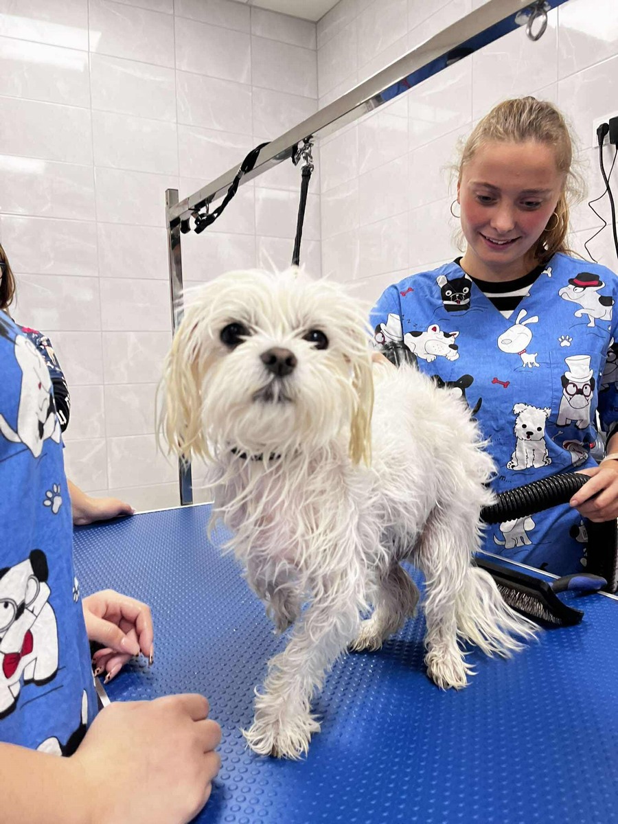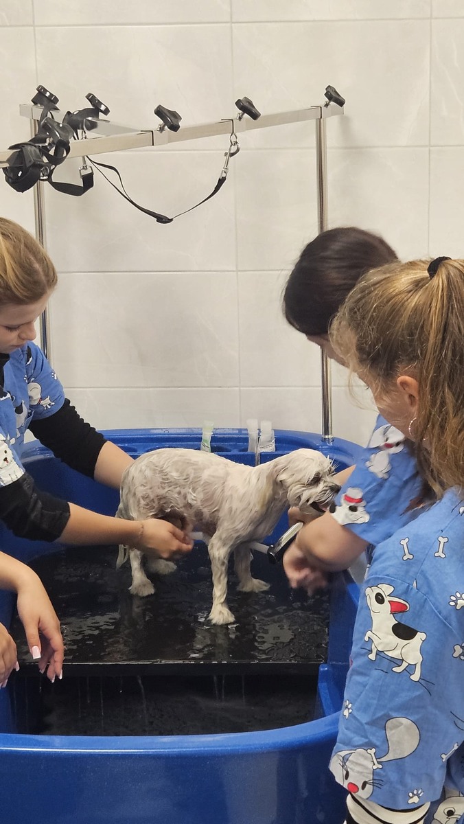 Dziś na zajęciach uczniowie samodzielnie przygotowywali szatę psa rasy Maltańczyk do strzyżenia komercyjnego. Zapoznali się z narzędziami , technikami strzyżenie na danej szacie. Modelem był Dolar - maltańczyk, który dzielnie z cierpliwością znosił pierwsze podejmowane próby strzyżenie przez uczniów.