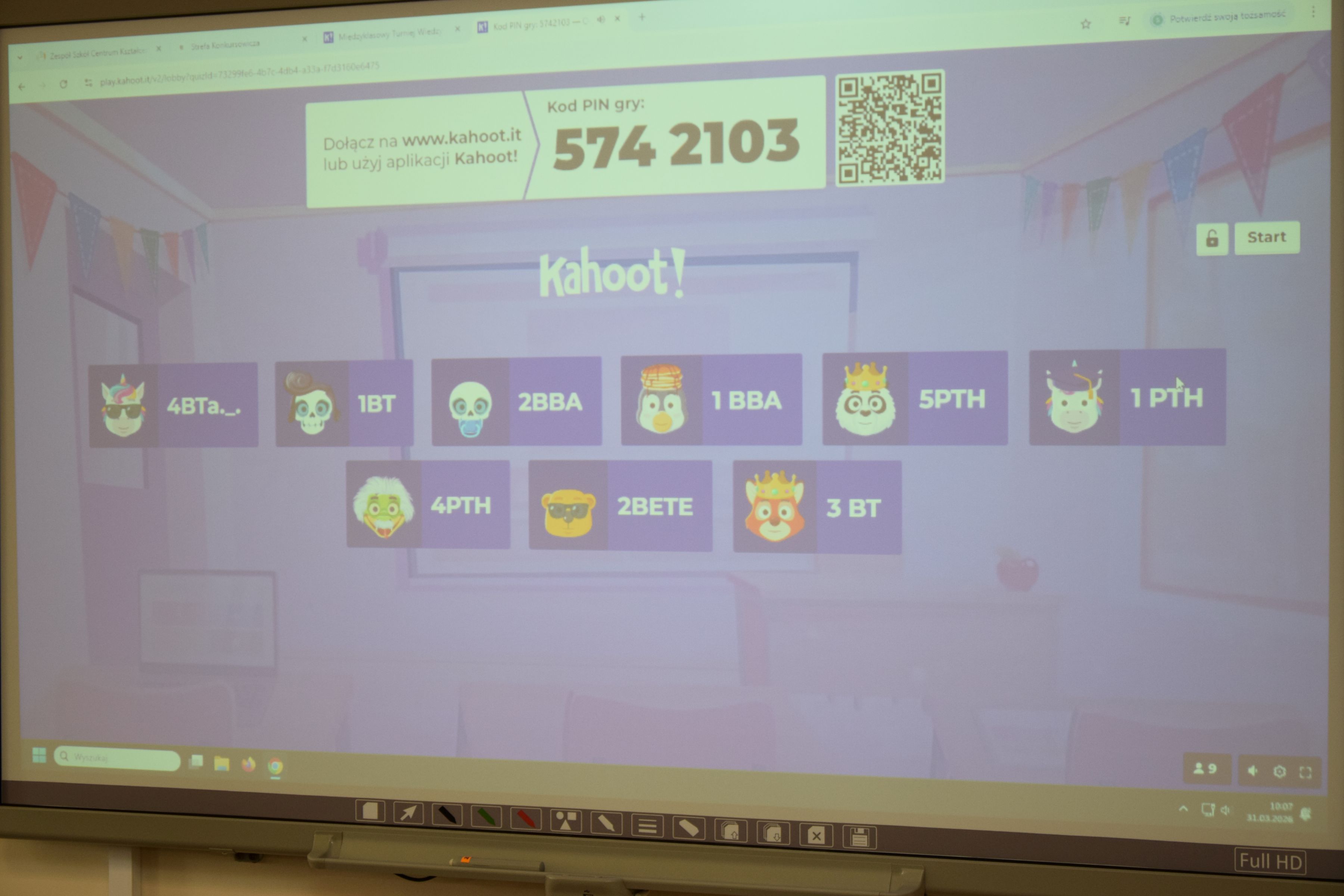 Miał on formę interaktywnego quizu, w którym zmierzyły się reprezentacje aż 11. klas. Każdą drużynę tworzyły 2–3 śmiałe i dobrze przygotowane osoby — w sumie 30 uczestników. Po wylosowaniu stanowiska zespoły zajęły miejsca przed komputerami i przystąpiły do pełnej emocji rozgrywki. Atmosfera była pełna energii, dobrego humoru i pozytywnej rywalizacji. Uczestnicy walczyli do ostatniego pytania.