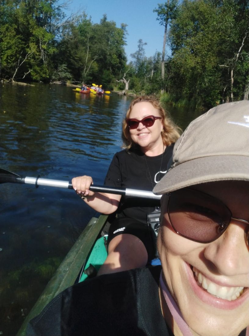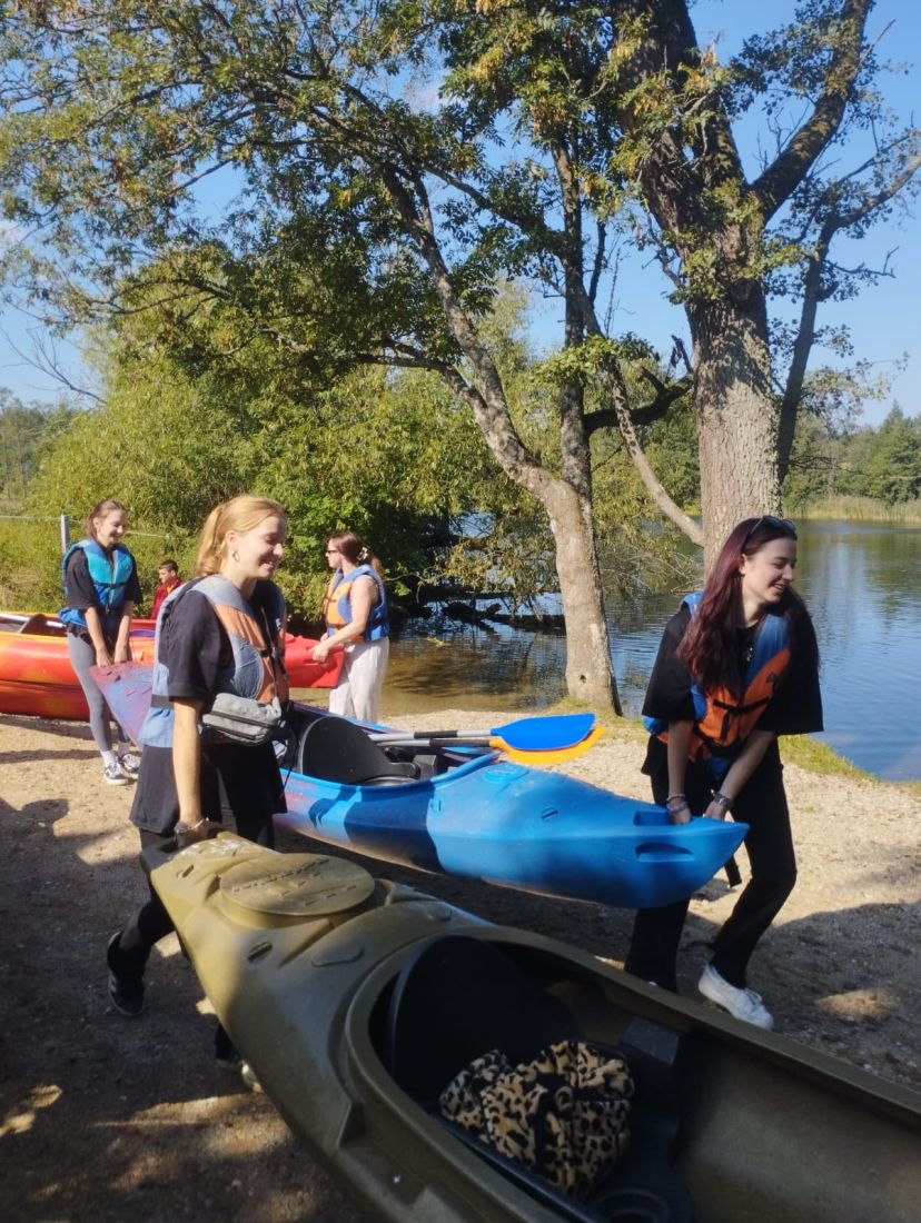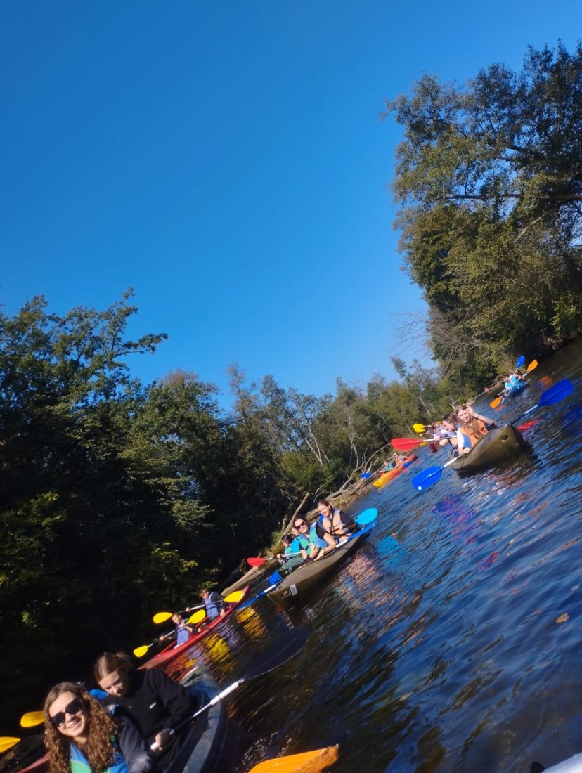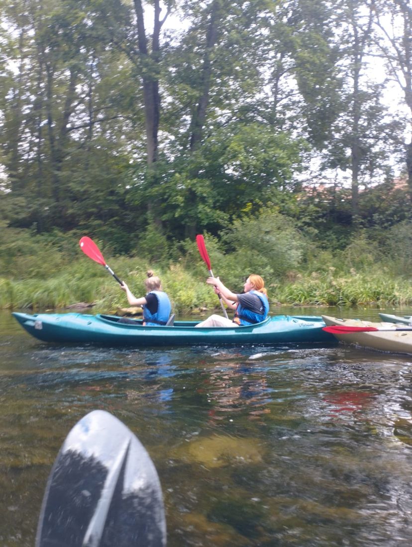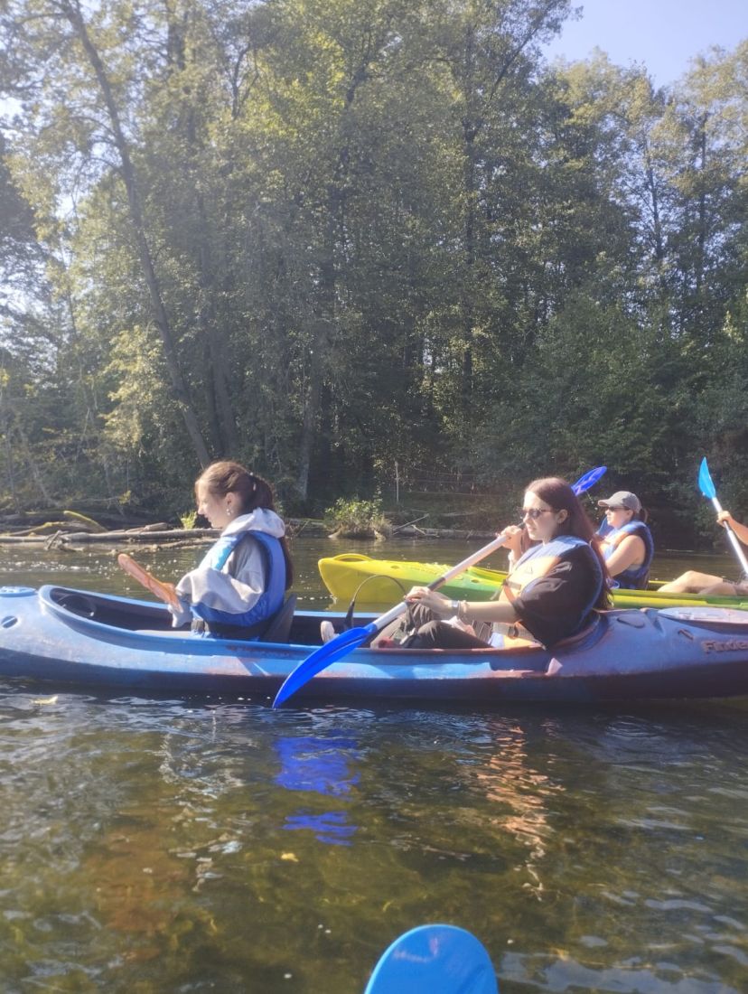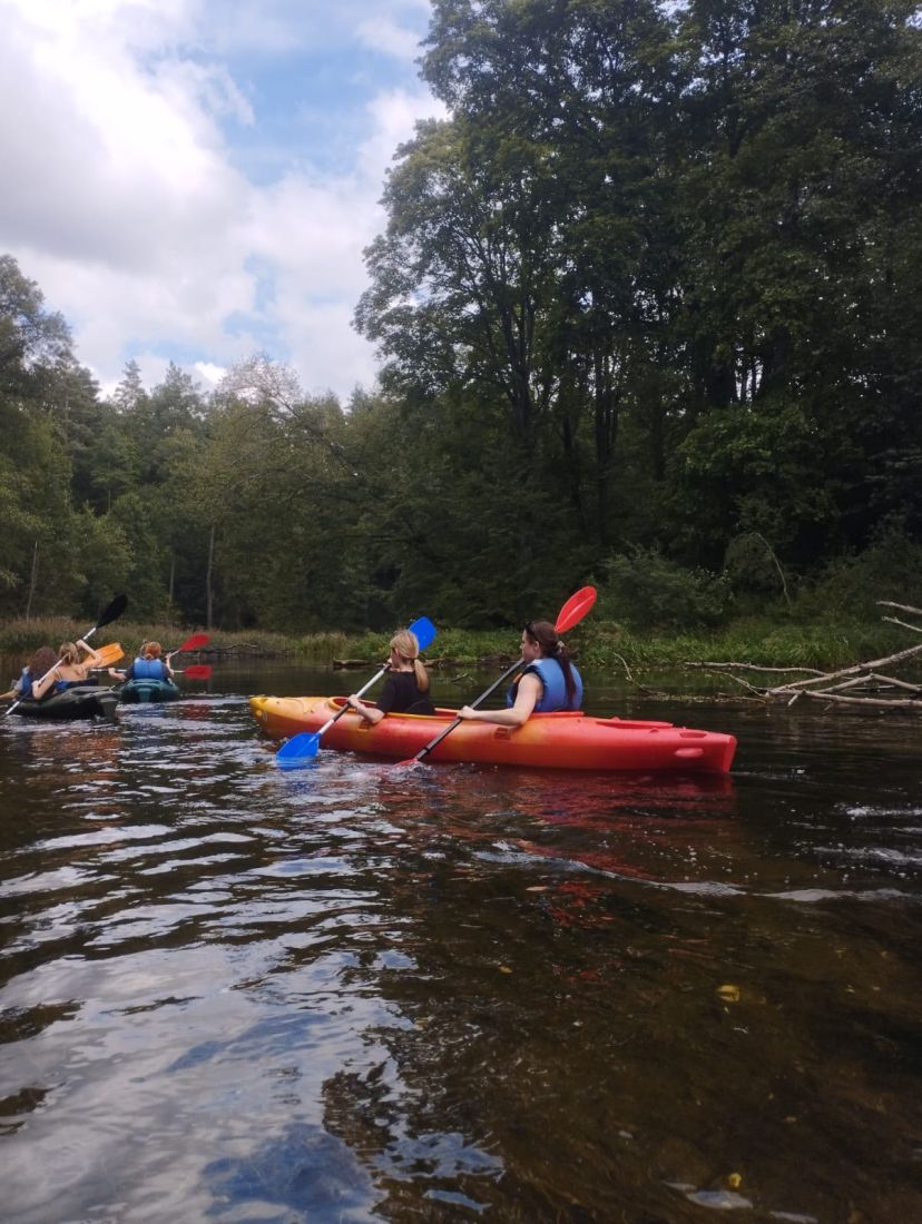Pogoda dopisała - było słonecznie, ciepło i bezwietrznie, co stworzyło idealne warunki do aktywnego wypoczynku. Młodzież z entuzjazmem wiosłowała, podziwiając uroki przyrody i ciesząc się wspólnie spędzonym czasem. Nie zabrakło śmiechu, rozmów i wzajemnego wsparcia - wszystko to sprawiło, że wycieczka była nie tylko okazją do relaksu, ale także do budowania więzi i współpracy w grupie.