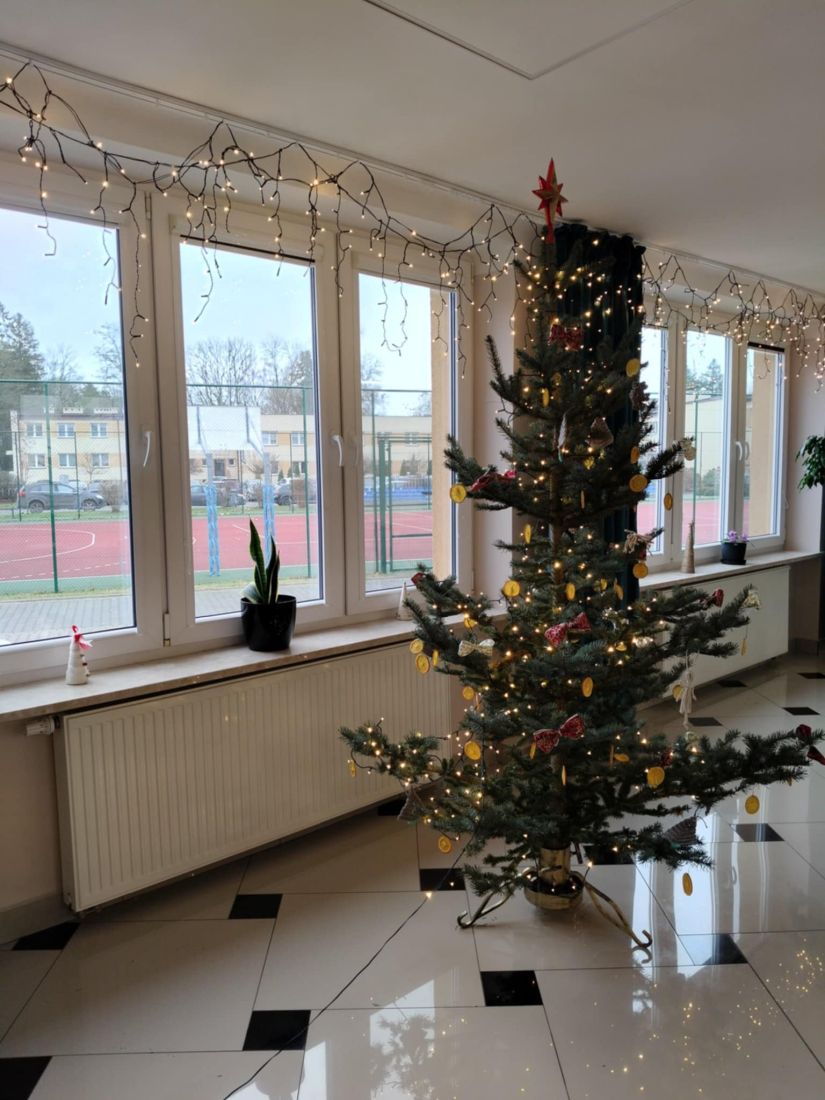 Jedną z choinek zdobyliśmy we wtorek, 9 grudnia, oddając surowce wtórne w akcji „Świąteczne drzewko za surowce”, której partnerem była nasza szkoła. To drzewko ozdobimy dekoracjami wykonanymi w całości z naturalnych materiałów, przygotowanymi własnoręcznie przez naszą zdolną młodzież.