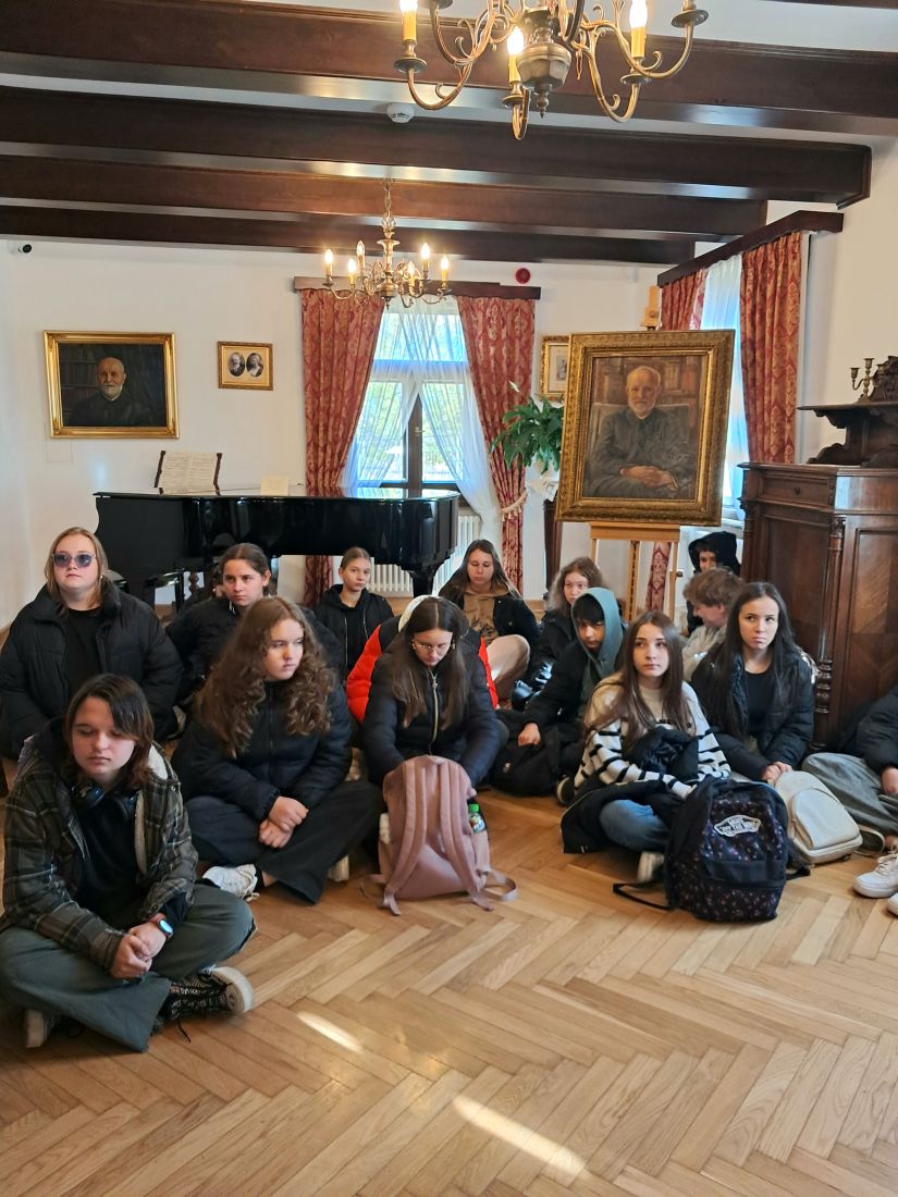Kolejnym punktem programu była wizyta w Muzeum Przyrody w Drozdowie, mieszczącym się w dworku rodziny Lutosławskich. To właśnie stąd pochodził wybitny kompozytor Witold Lutosławski, którego muzyka zachwyca cały świat. Poznaliśmy historię tej niezwykłej rodziny oraz odwiedziliśmy salę poświęconą Romanowi Dmowskiemu, który ostatnie lata swojego życia spędził właśnie w Drozdowie.