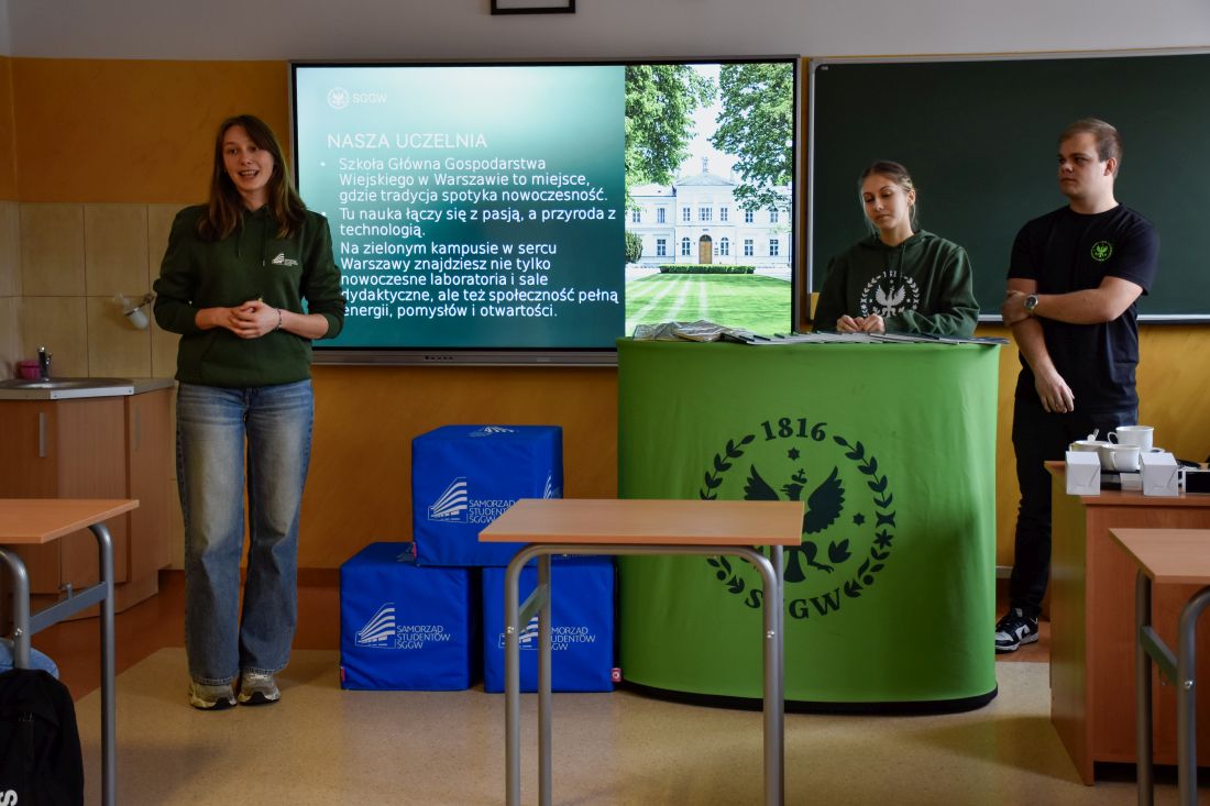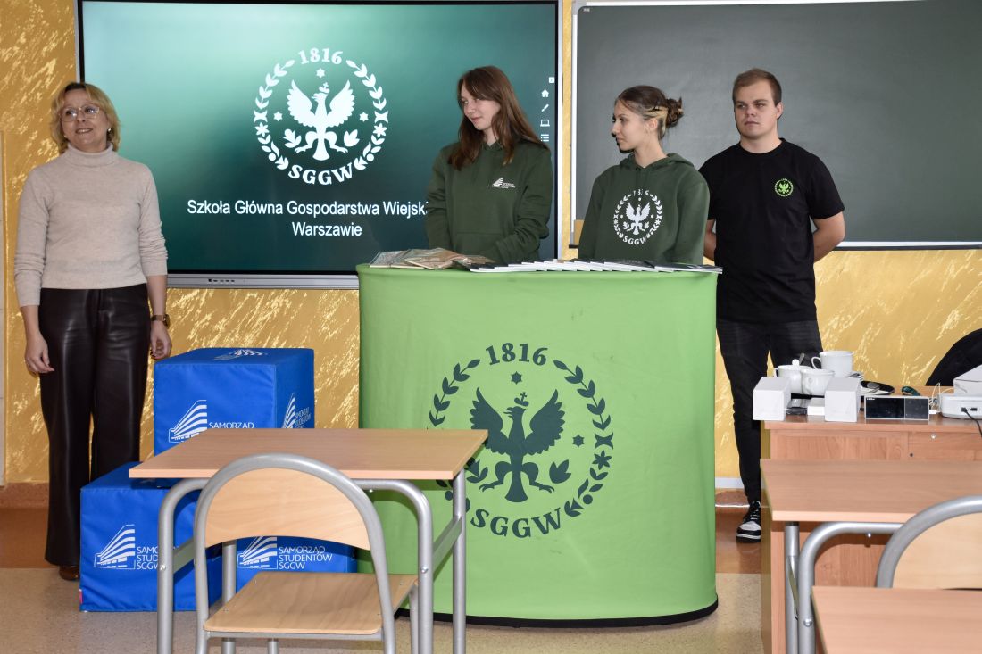 Choć przygotowania do studniówki zaprzątają teraz głowy maturzystów - sukienki, garnitury, próby poloneza i cała ta wyjątkowa atmosfera - w naszej szkole znalazł się także moment, by spojrzeć odrobinę dalej, ku temu, co czeka po maturze. Doskonałą okazją była wizyta delegacji studentów Szkoły Głównej Gospodarstwa Wiejskiego w Warszawie, którzy przyjechali, aby opowiedzieć o życiu akademickim i możliwościach, jakie oferuje jedna z najważniejszych uczelni przyrodniczo-rolniczych w kraju.