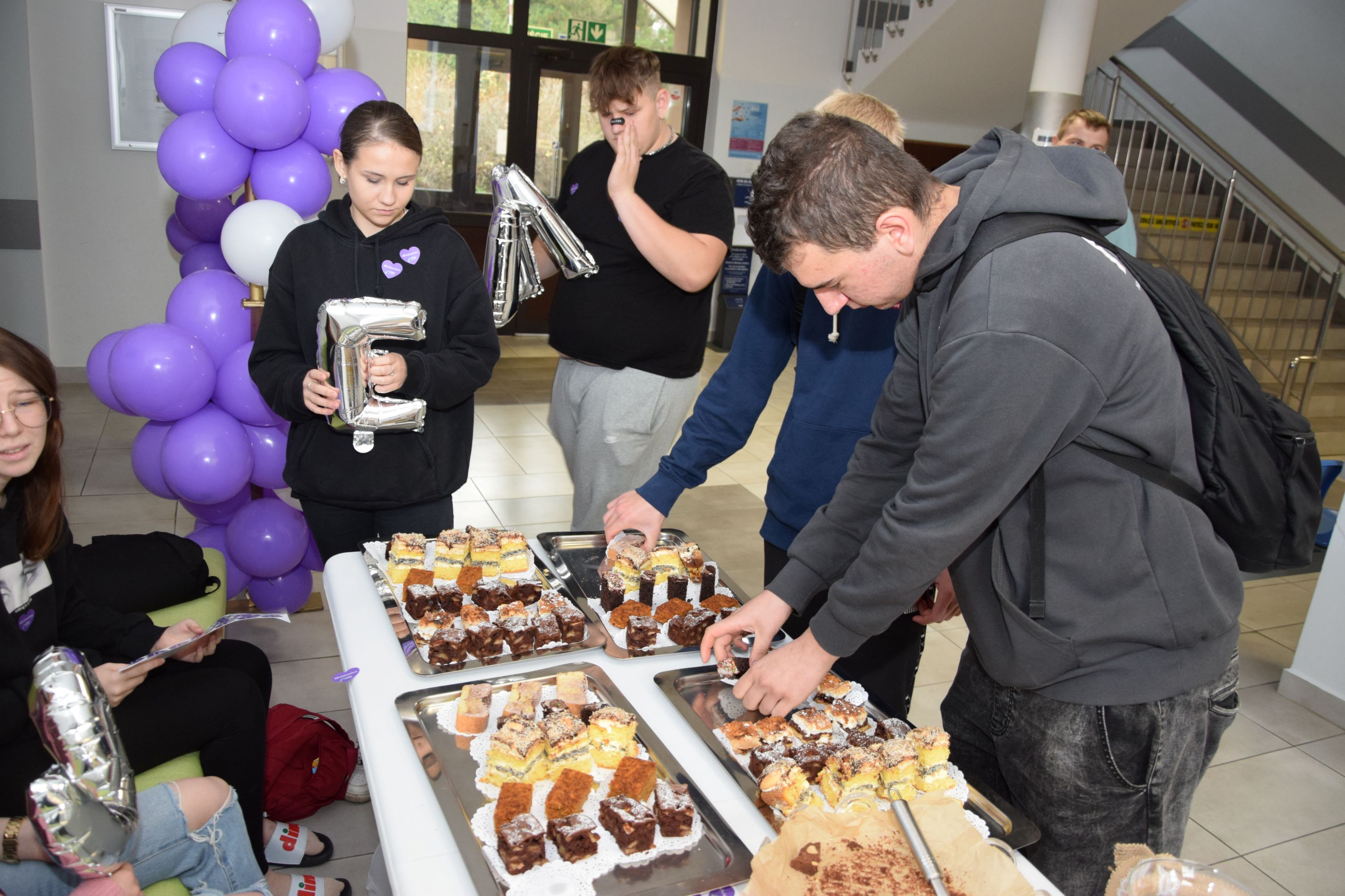Nasza szkoła z dumą włączyła się w akcję #fioletowelove2025. W tym roku Samorząd Uczniowski zorganizował kiermasz domowych ciast, który cieszył się ogromnym zainteresowaniem. Dzięki zaangażowaniu uczniów, nauczycieli, rodziców i wszystkich odwiedzających udało się zebrać 700 zł, które już wkrótce zasilą konto fundacji. Na uczestników czekała także fioletowa ścianka, przy której można było wykonać pamiątkowe zdjęcie pełne dobrej energii.