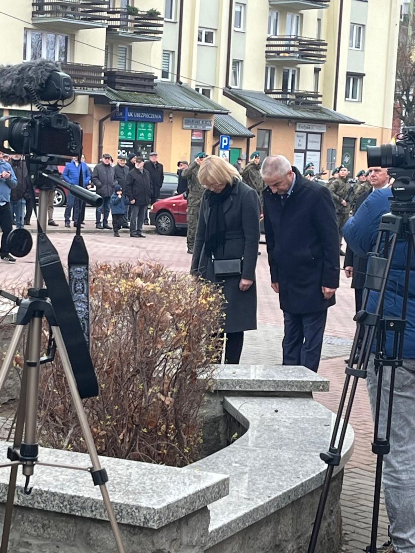 W imieniu społeczności naszej szkoły okolicznościowy stroik przygotowany przez uczniów kształcących się w zawodzie technik architektury krajobrazu pod czujnym okiem nauczycielki architektury krajobrazu, Katarzyny Glinki (dziękujemy!) pod Dębem Wolności złożyła delegacja w składzie: dyrektor Andrzej Sakowicz i kierownik praktycznej nauki zawodu, Maria Dobies.