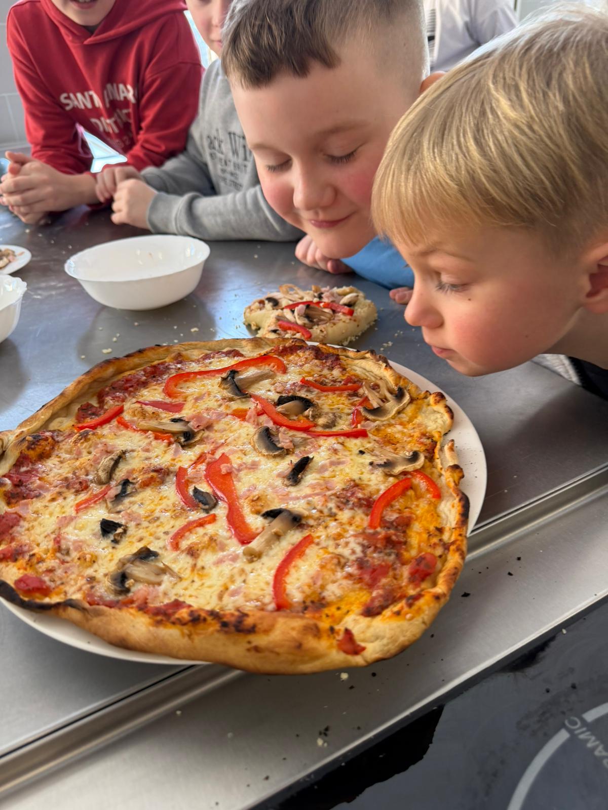 Serdecznie dziękujemy dzieciom i opiekunom z MOSiR w Ostrowi Mazowieckiej za wizytę oraz wspólnie spędzony czas pełen uśmiechu, nauki i zapachu świeżo wypieczonej pizzy. Mamy nadzieję, że zdobyte doświadczenia na długo pozostaną w pamięci uczestników.