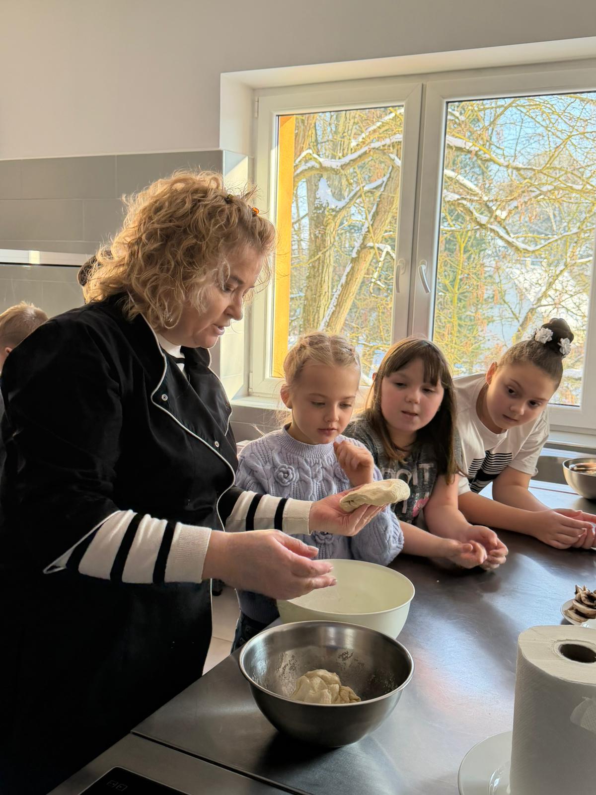 Niecodzienne zajęcia poprowadziły nauczycielki praktycznej nauki zawodu: Małgorzata Gajewska oraz Iwona Jastrzębska wraz z uczennicami kl. 2 BBA. Panie nie tylko czuwały nad prawidłowym przebiegiem warsztatów, ale także wprowadziły dzieci w tajniki pracy kucharza. Dzięki ich wsparciu i doświadczeniu uczestnicy mogli poczuć się jak prawdziwi adepci sztuki kulinarnej.