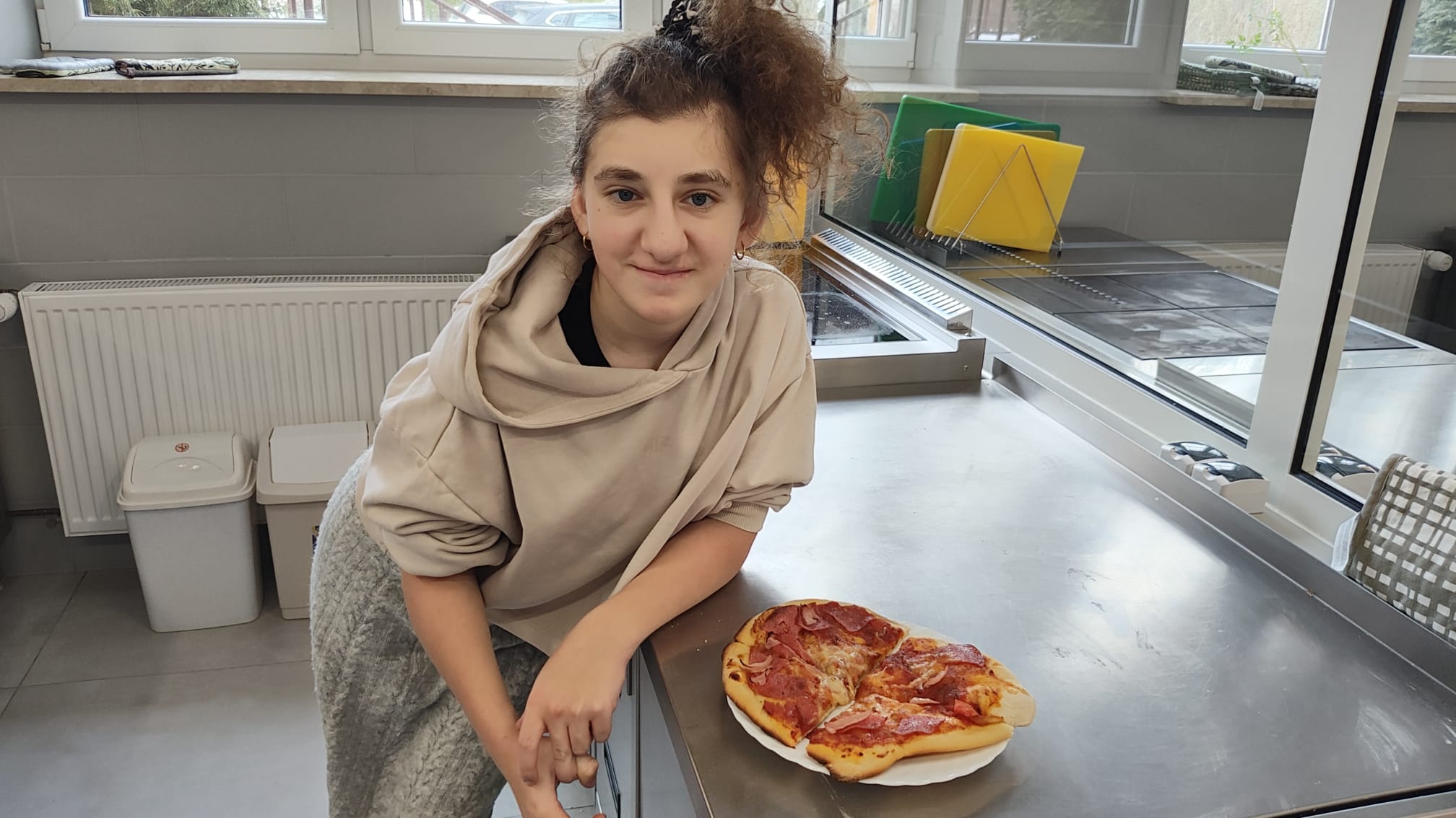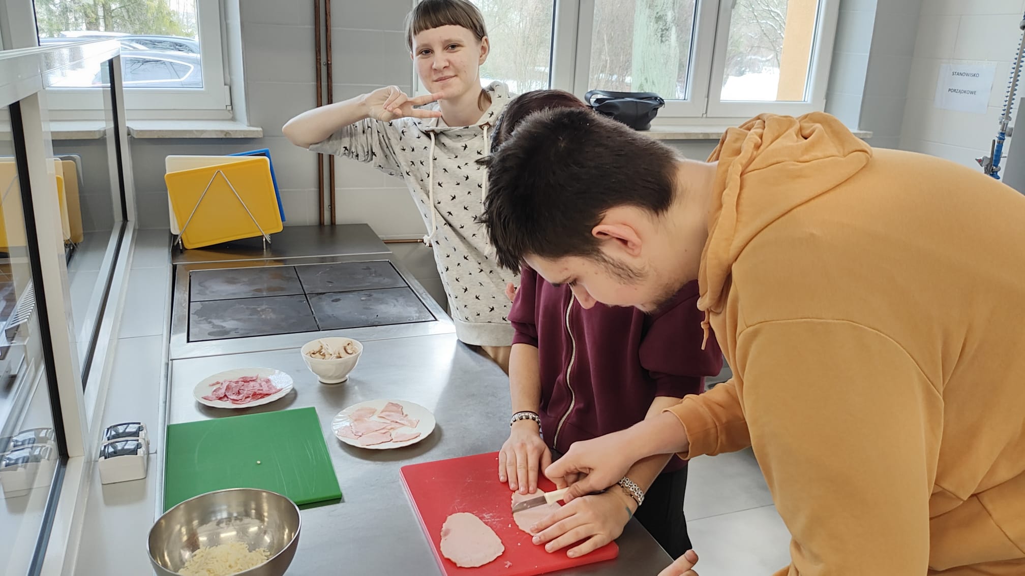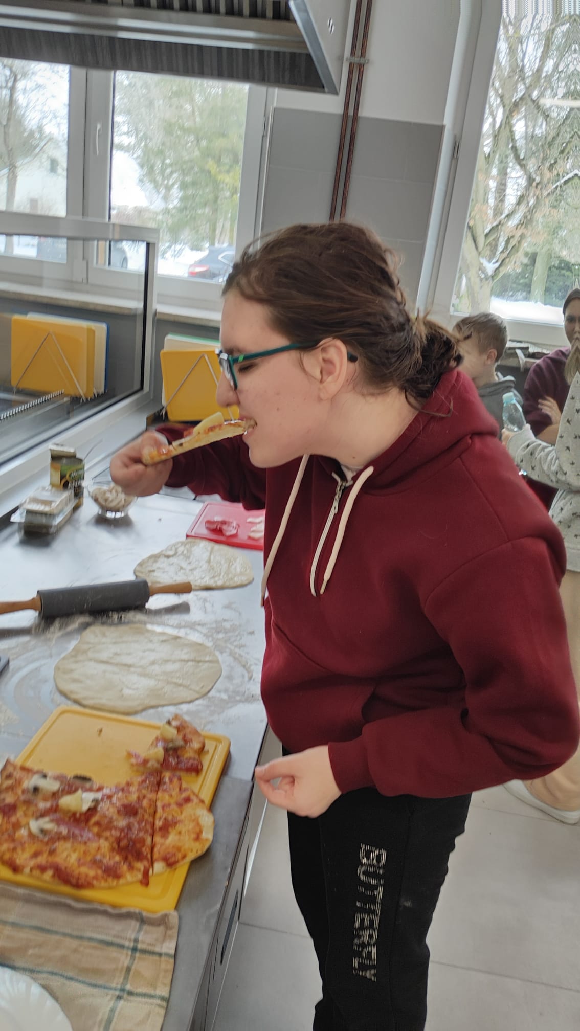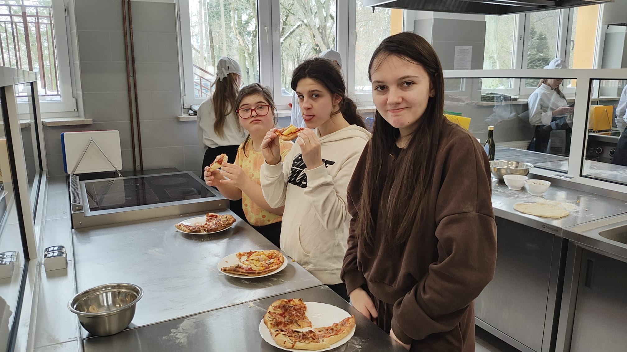 Uczniowie własnoręcznie przygotowali klasyczną pizzę z sosem pomidorowym, salami i mozarellą. Warsztaty poprowadziła Małgorzata Gajewska z nieocenioną pomocą uczniów klasy 2BBA. To był dobry dzień! Pełen emocji i wspaniałych smaków! Spędzony w przyjaznej atmosferze.