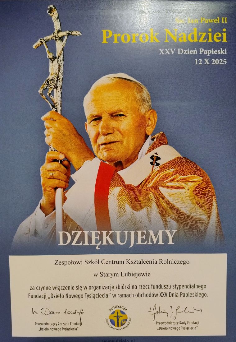 Podziękowania dla szkoły od Fundacji "Dzieło Nowego Tysiąclecia"