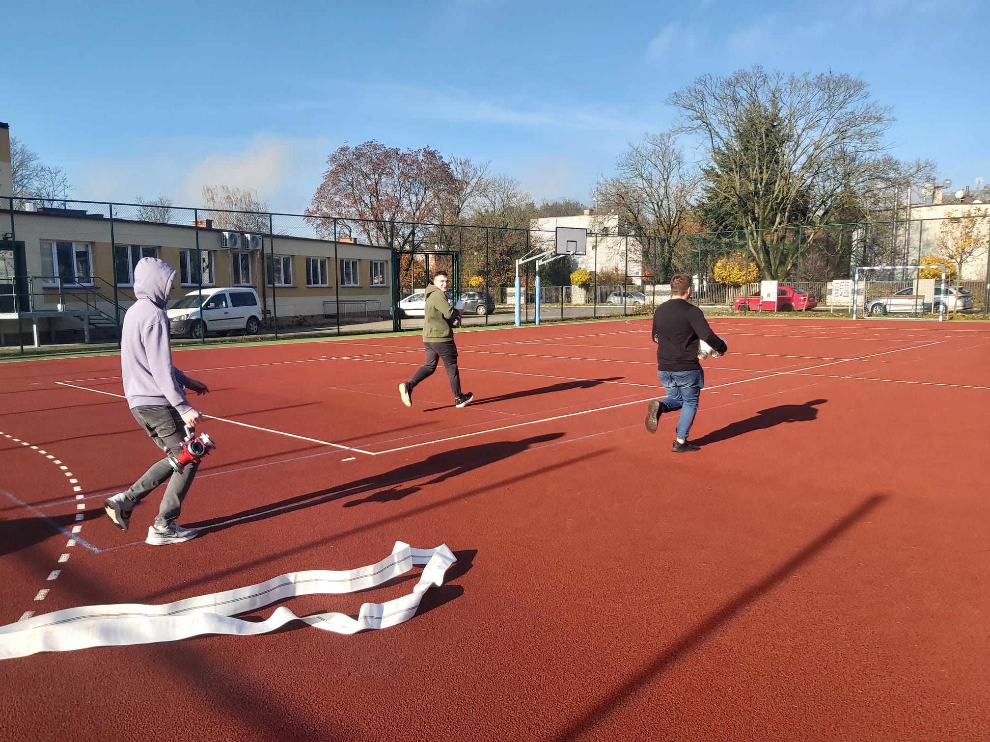 4 listopada uczniowie klas 3BT, 4BTa i 4BTb gasili pożar, który wybuchł w naszej szkole. Na szczęście były to tylko ćwiczenia:).