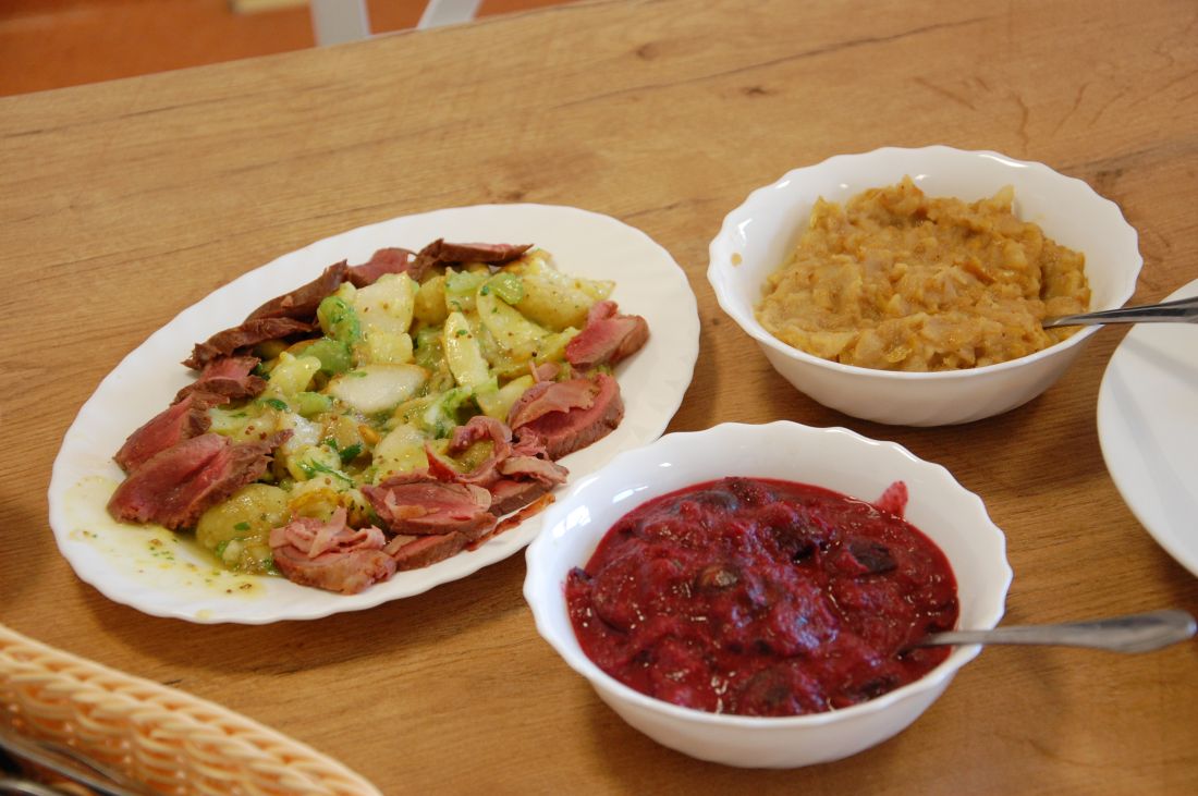 - pieczony udziec ze szpikowaniem słoniną, który zachwycił delikatnością i soczystością