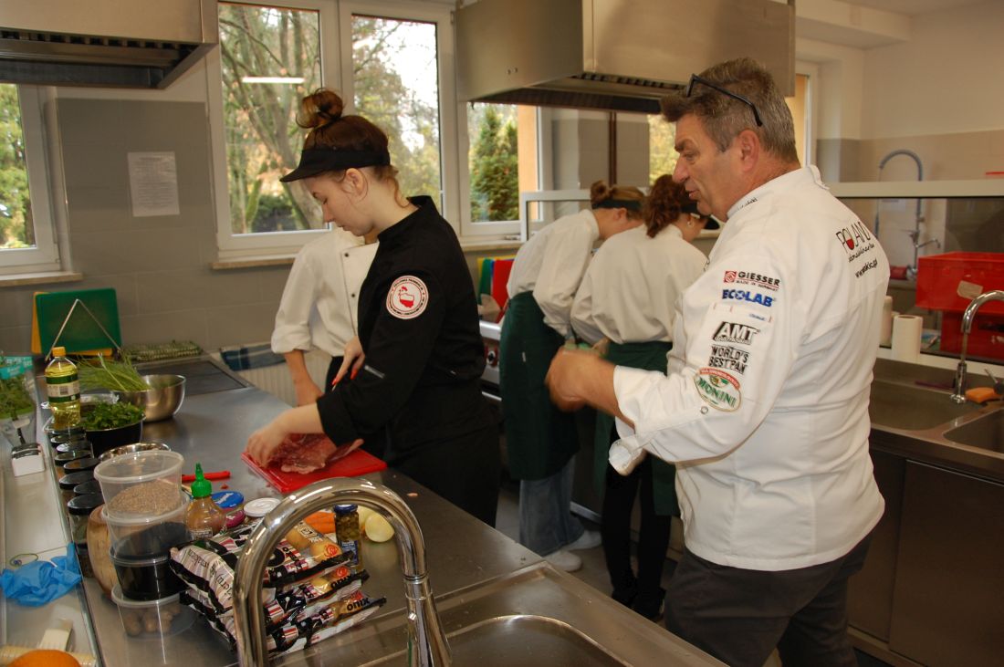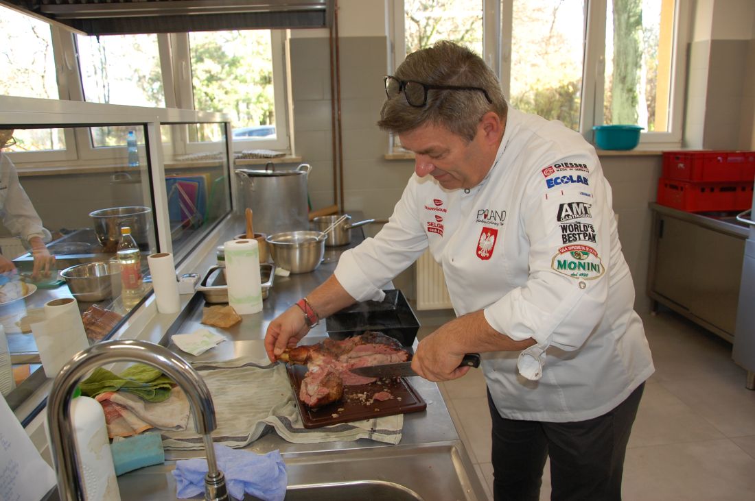 Profesjonalne zajęcia z zakresu dziczyzny w kuchni poprowadził Jarosław Uściński – szef kuchni, prezes Ogólnopolskiego Stowarzyszenia Szefów Kuchni i Cukierni OSSKiC, ceniony ekspert sztuki kulinarnej i promotor polskich tradycji gastronomicznych. Obecność tak wybitnego autorytetu była dla nas, nie tylko ogromnym wyróżnieniem, lecz także inspiracją do rozwijania pasji kulinarnej.