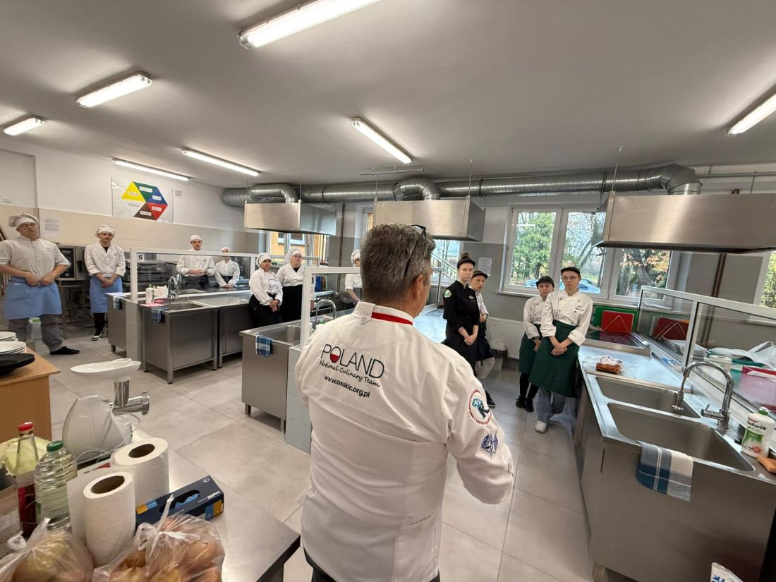 Uczestnicy warsztatów pracowali pod czujnym okiem mistrza, ucząc się harmonii smaków, precyzji wykonania oraz estetyki przygotowywania potraw. Zajęcia przebiegały w atmosferze pasji, profesjonalizmu i kreatywności, a zdobyta wiedza z pewnością zaprocentuje w przyszłej karierze młodych adeptów sztuki kulinarnej.