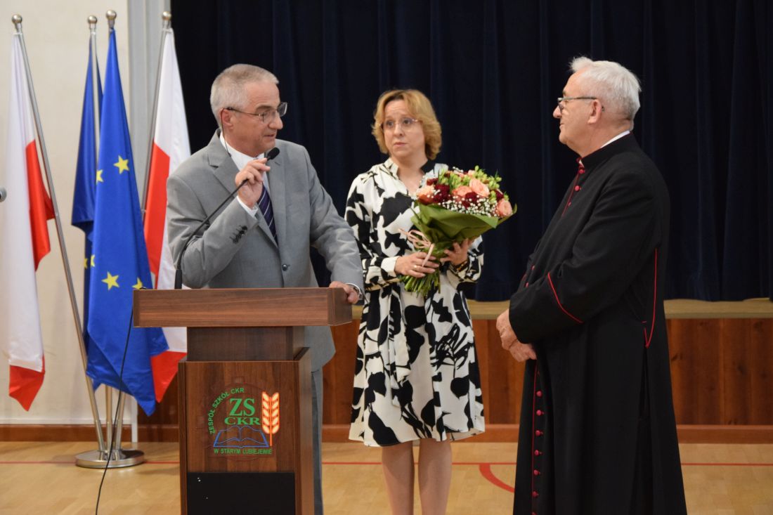 Bardzo wzruszającą częścią uroczystości było pożegnanie księdza prałata Jana Okuły oraz dwojga długoletnich nauczycieli naszej szkoły - Pani Tatiany Bazylak i Pana Sławomira Konarzewskiego, którzy odeszli na zasłużoną emeryturę. Życzymy księdzu Janowi oraz obojgu Państwu dużo zdrowia, energii, pasji i ciekawości świata z innej perspektywy!