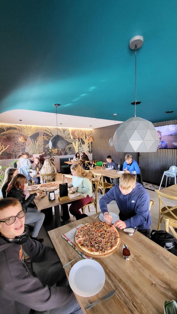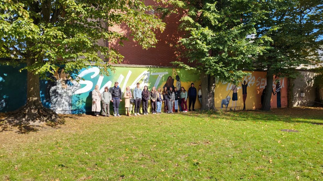 Po zajęciach w Starej Elektrowni młodzież udała się pod mural przy Bibliotece Miejskiej, którego odsłonięcie miało miejsce kilka dni wcześniej. Jak podano podczas warsztatów, miejsce wokół muralu jest do dyspozycji młodych ludzi, warto zatem znać ten punkt na mapie Ostrowi Mazowieckiej. Następnie spacerem przez miasto udaliśmy się do pizzerii, aby zintegrować się w innych okolicznościach jak warunki szkolne czy przestrzeń wirtualna. To był dobrze spędzony czas.
