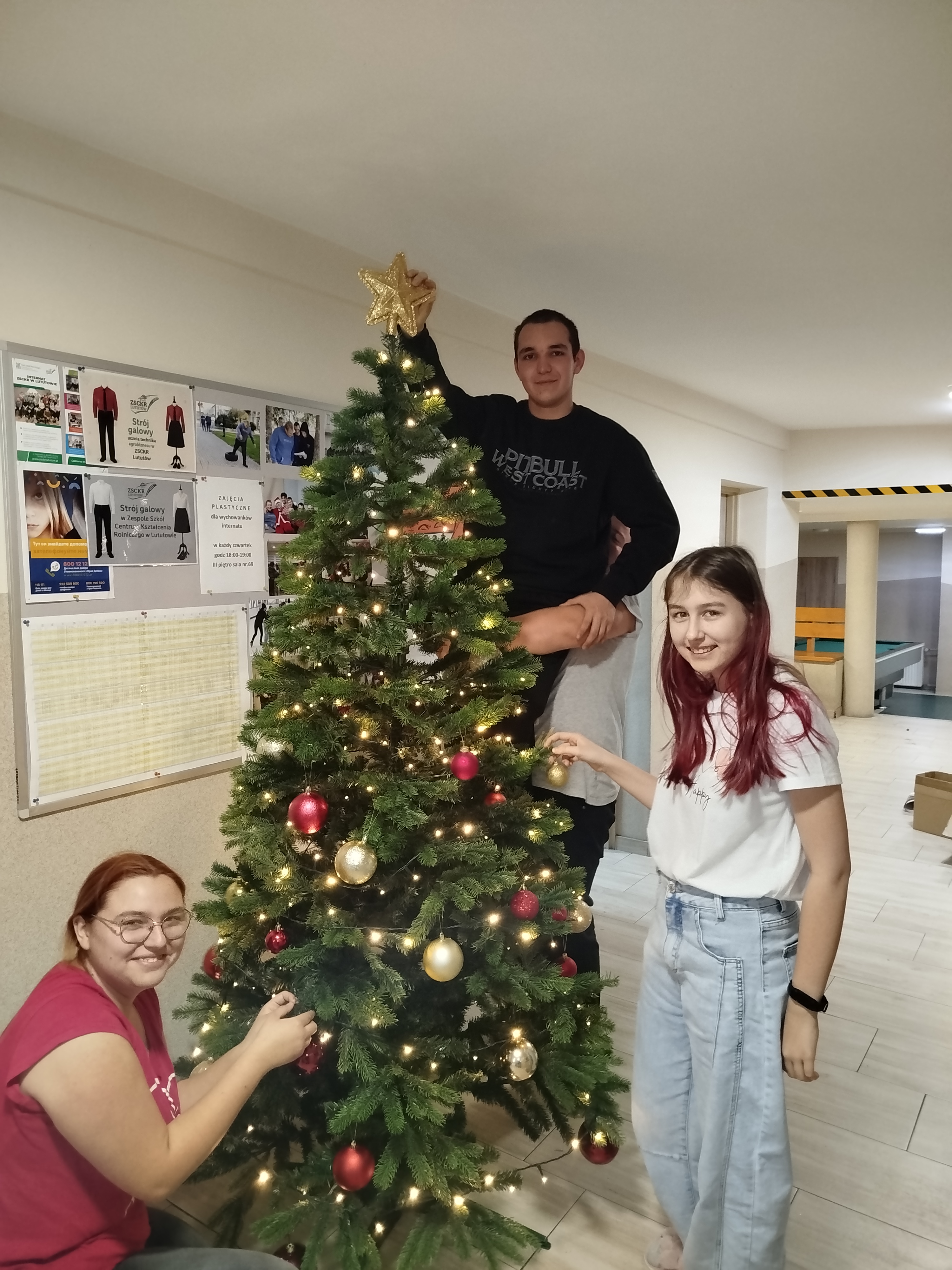 Ubieranie choinki to nie tylko tradycje związane ze świętami, ale również coroczny, nieodłączny element życia w szkolnym internacie. Dla młodzieży internatu ZSCKR w Lututowie jest to magiczny czas, kiedy powoli zaczyna rozbrzmiewać świąteczna muzyka, pojawia się łezka wzruszenia podczas opowieści o rodzinie i kultywowanych tradycjach. Nasz korytarz wypełnia się ciepłem światełek, czerwono-złotymi kolorami i myślami o naszych bliskich.